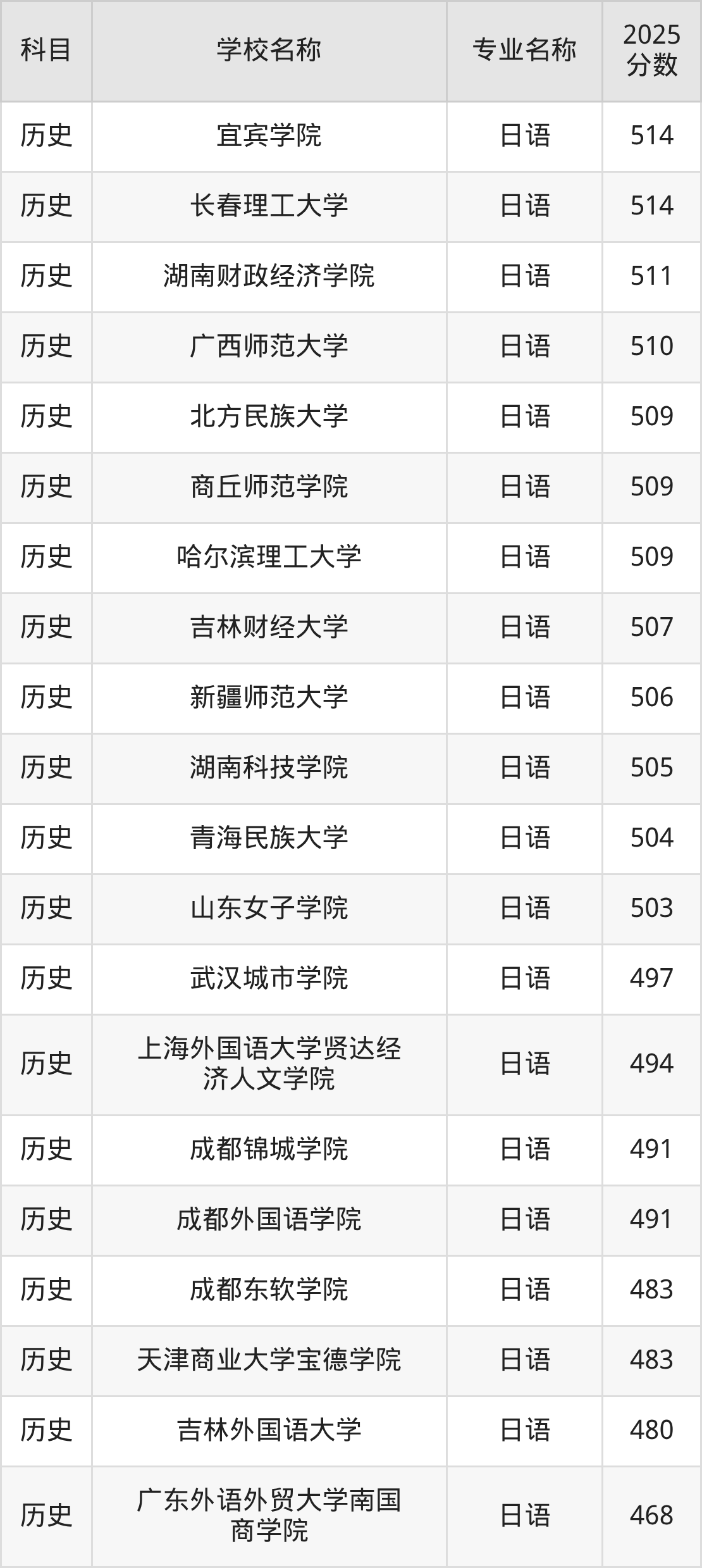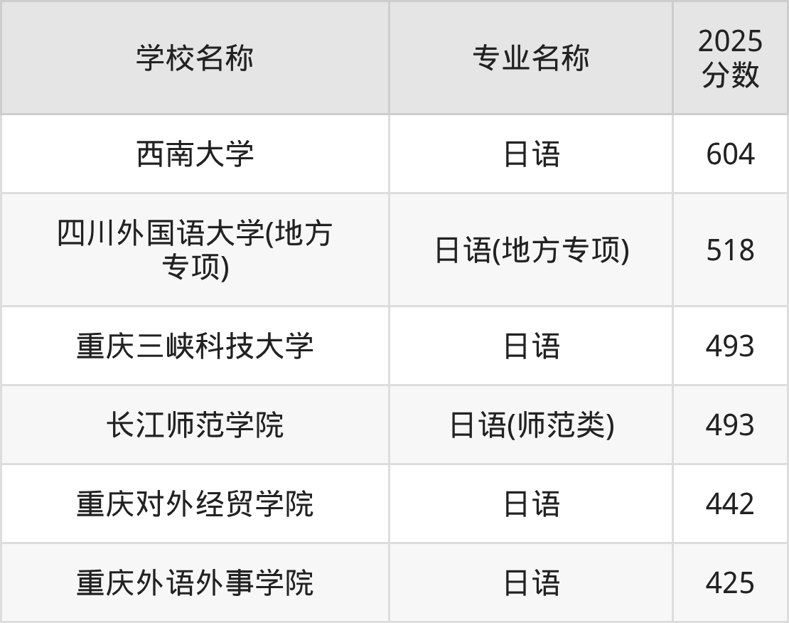 下文将为大家展示重庆市大学日语专业2025年在重庆高考的最低录取分数线!