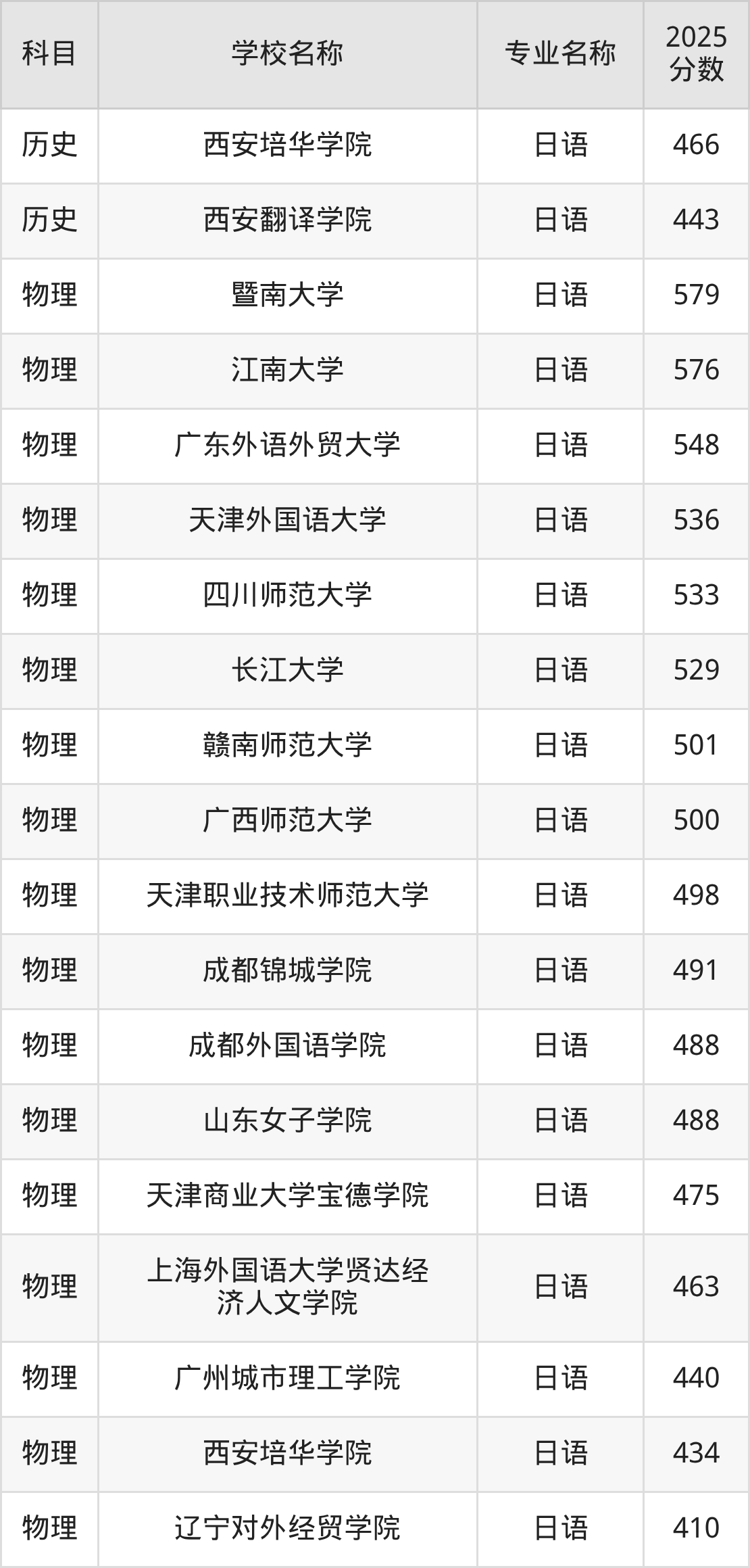 | 重庆外语外事学院 | 日语 | 443 |