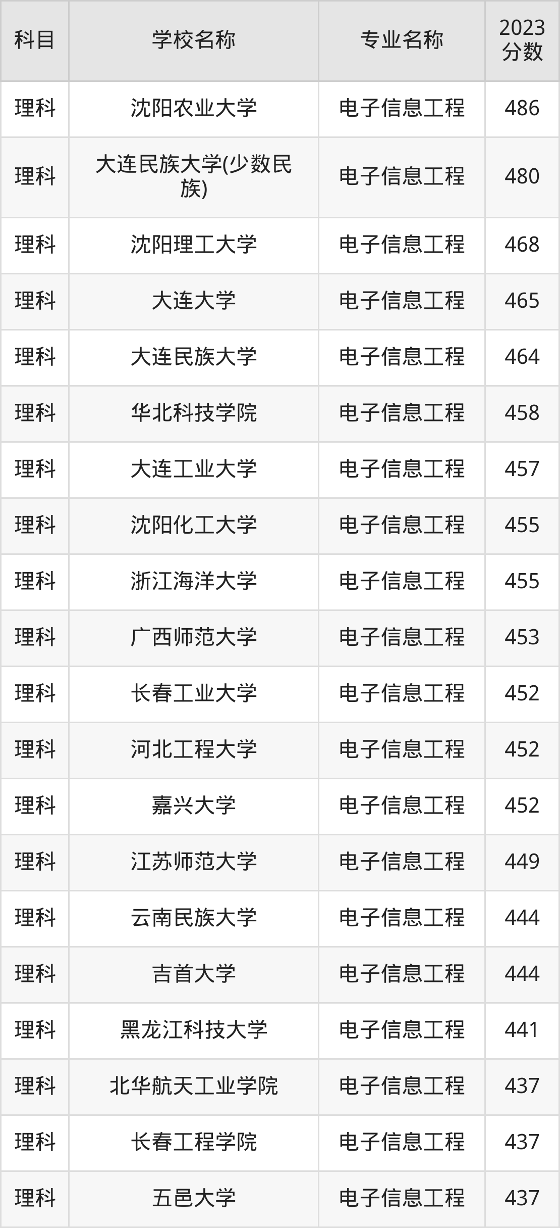 | 学校名称 | 专业名称 | 2023 分数 |