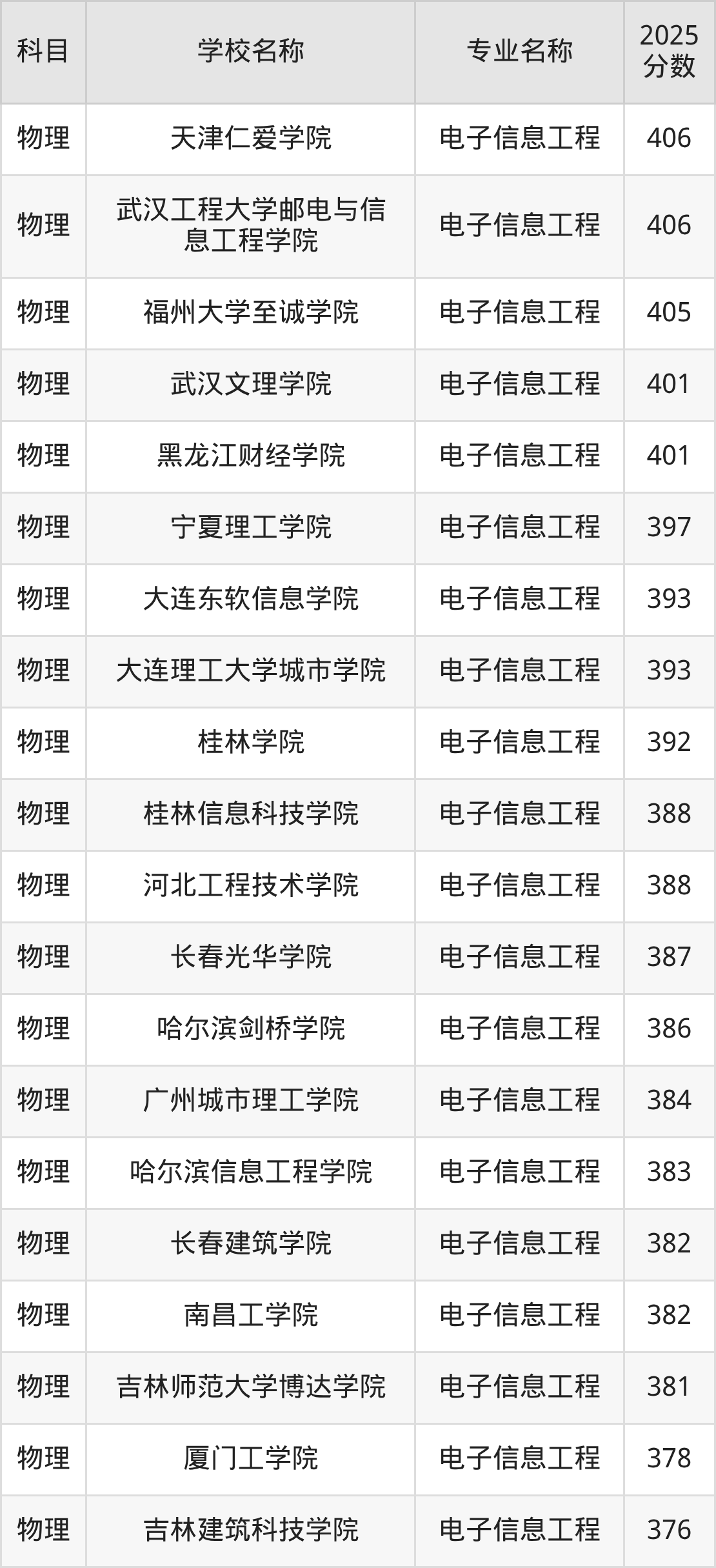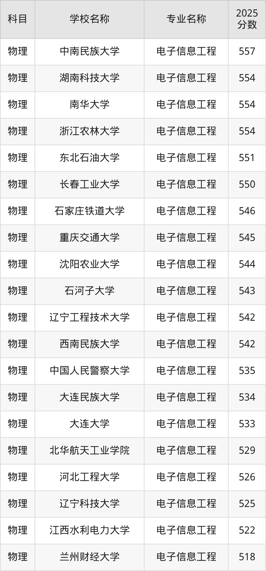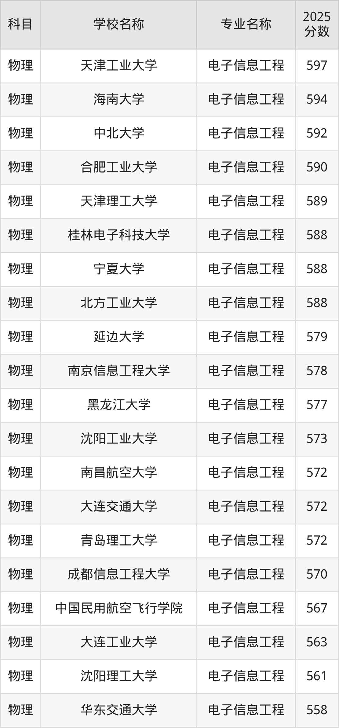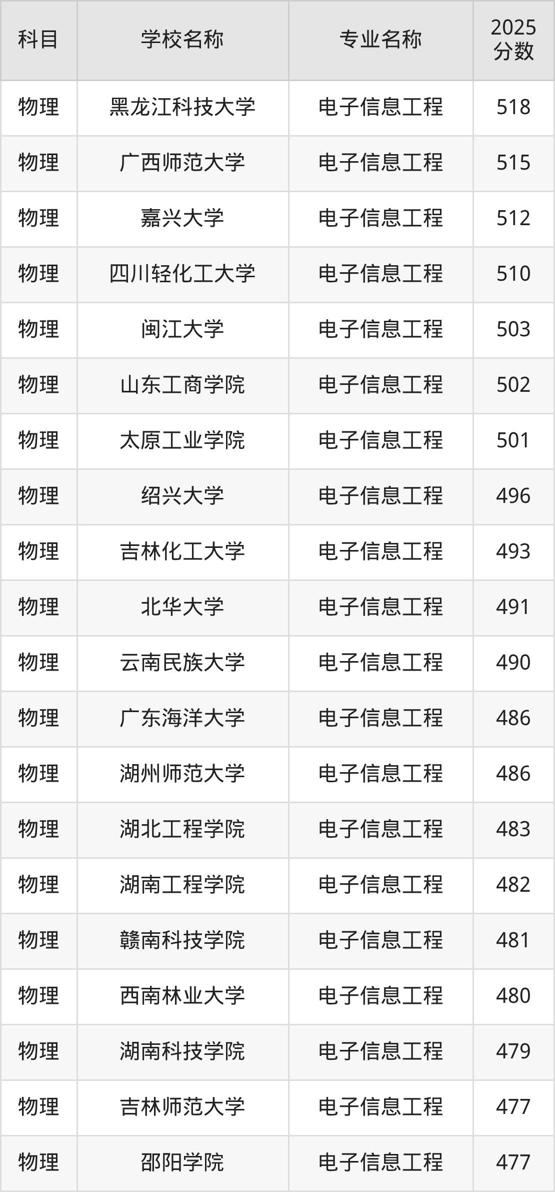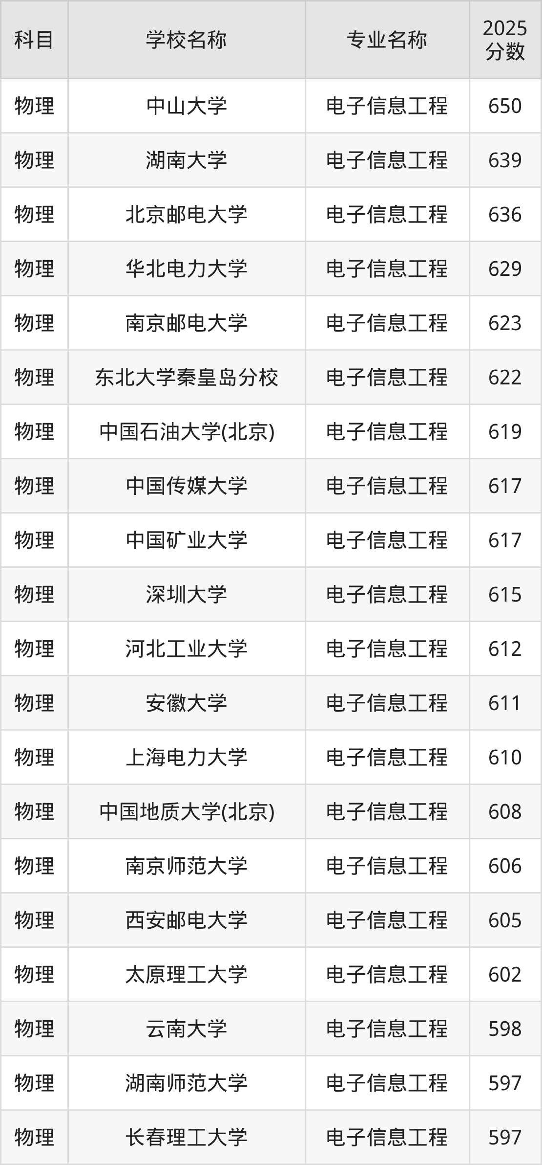| 学校名称 | 专业名称 | 2025 分数 |