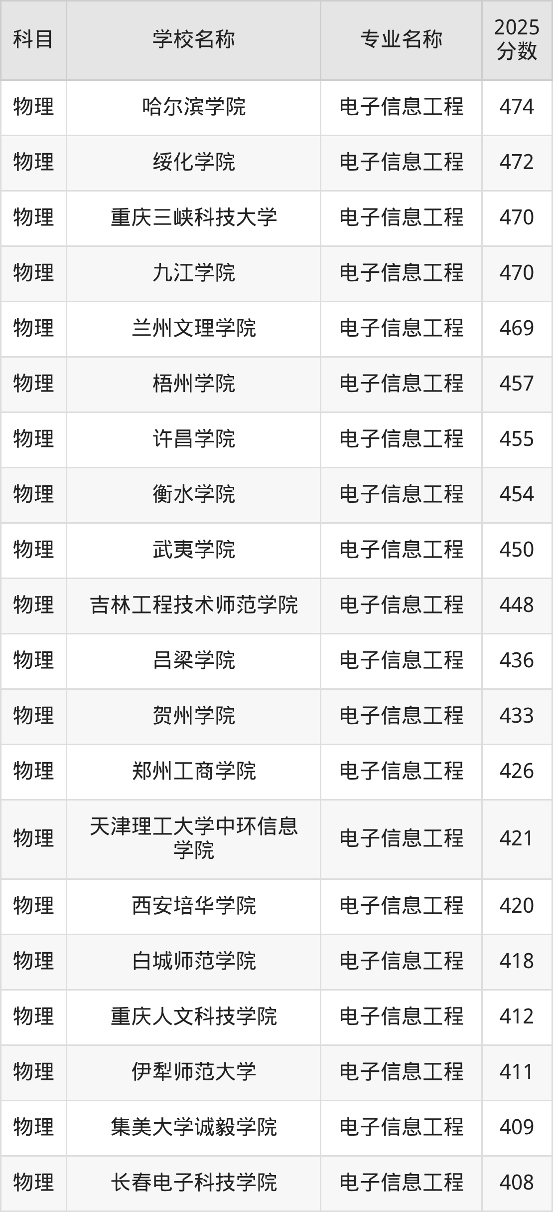 | 呼伦贝尔学院 | 电子信息工程 | 440 |
