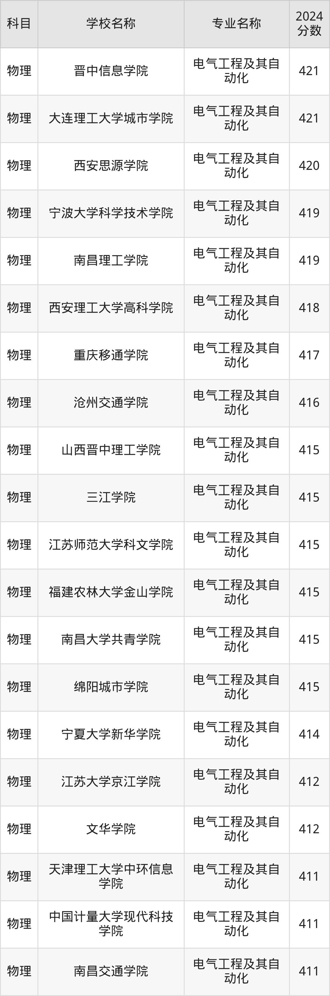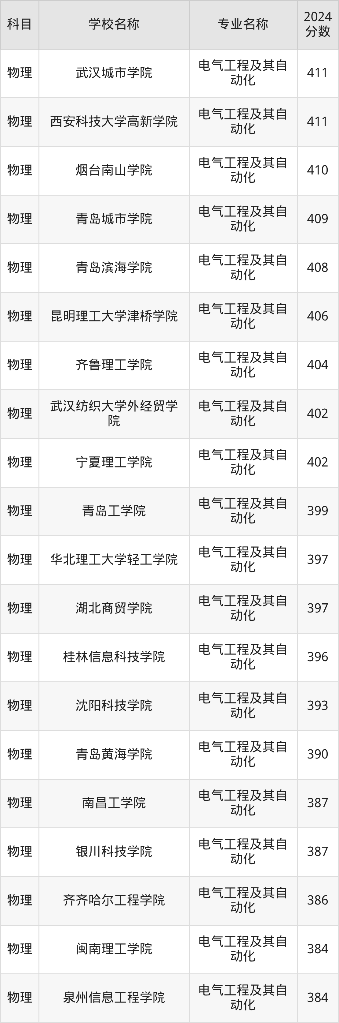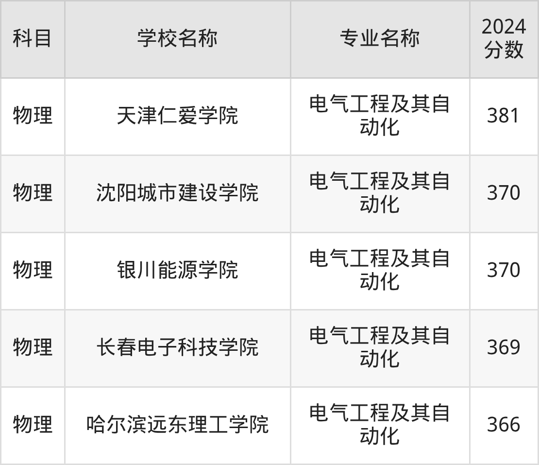 | 兰州信息科技学院 | 电气工程及其自 动化 | 369 |