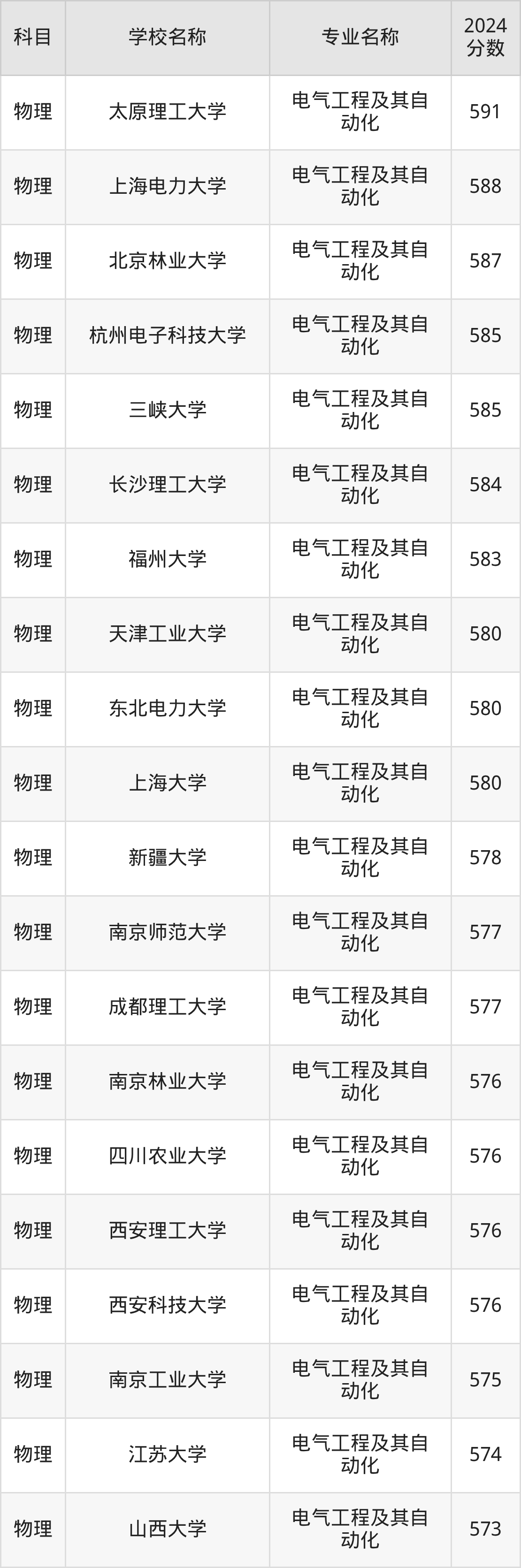 甘肃高考物理组:电气工程及其自动化专业的最低分是311分~569分