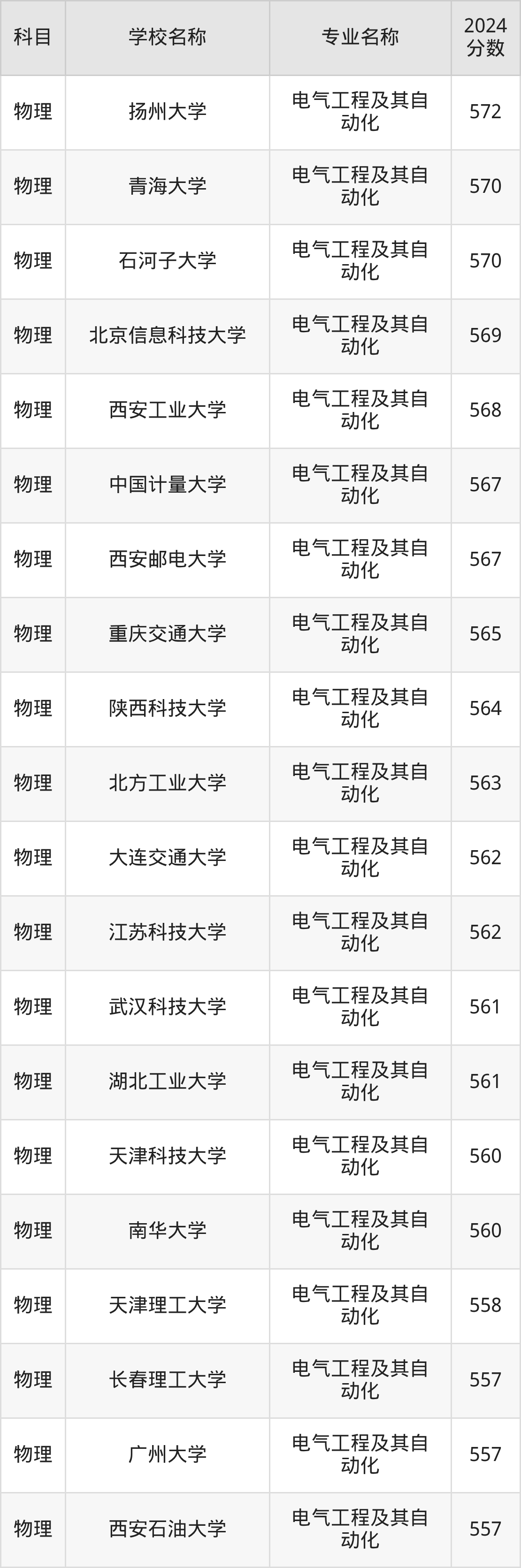 | 兰州交通大学 | 电气工程及其自 动化(卓越计划 班) | 569 |
