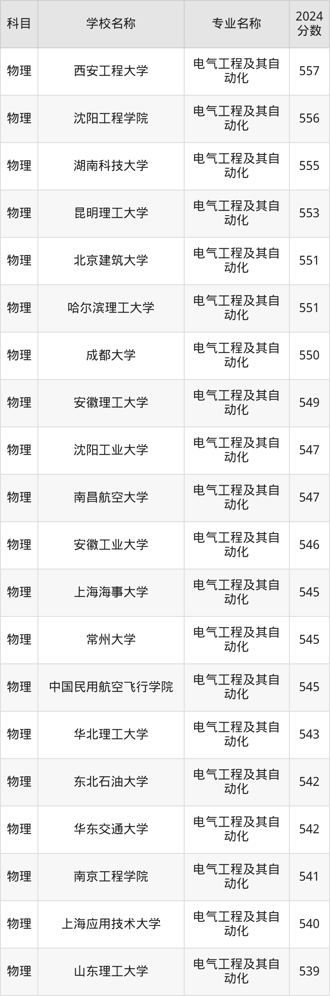 | 兰州交通大学 | 电气工程及其自 动化 | 553 |