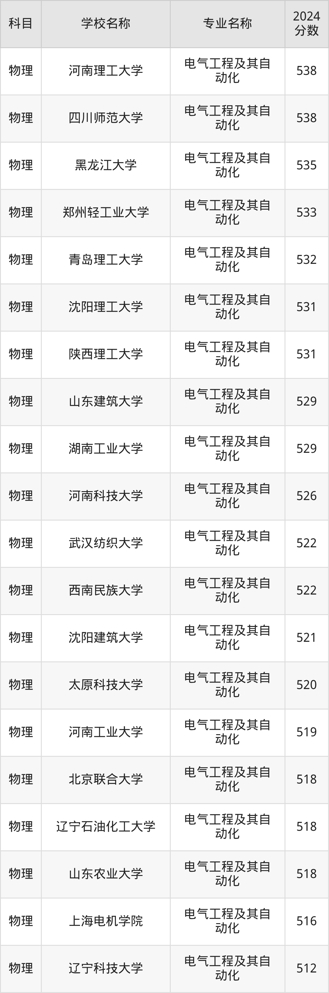 | 兰州理工大学 | 电气工程及其自 动化(地方专项 计划) | 522 |