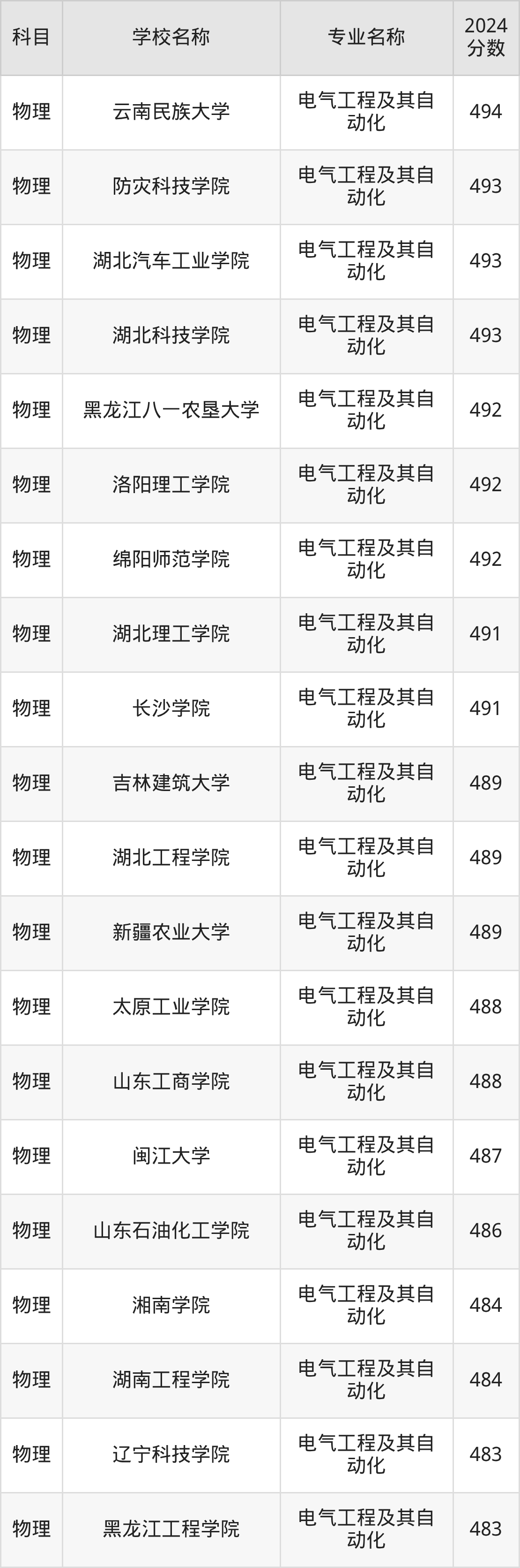| 甘肃农业大学 | 电气工程及其自 动化 | 499 |