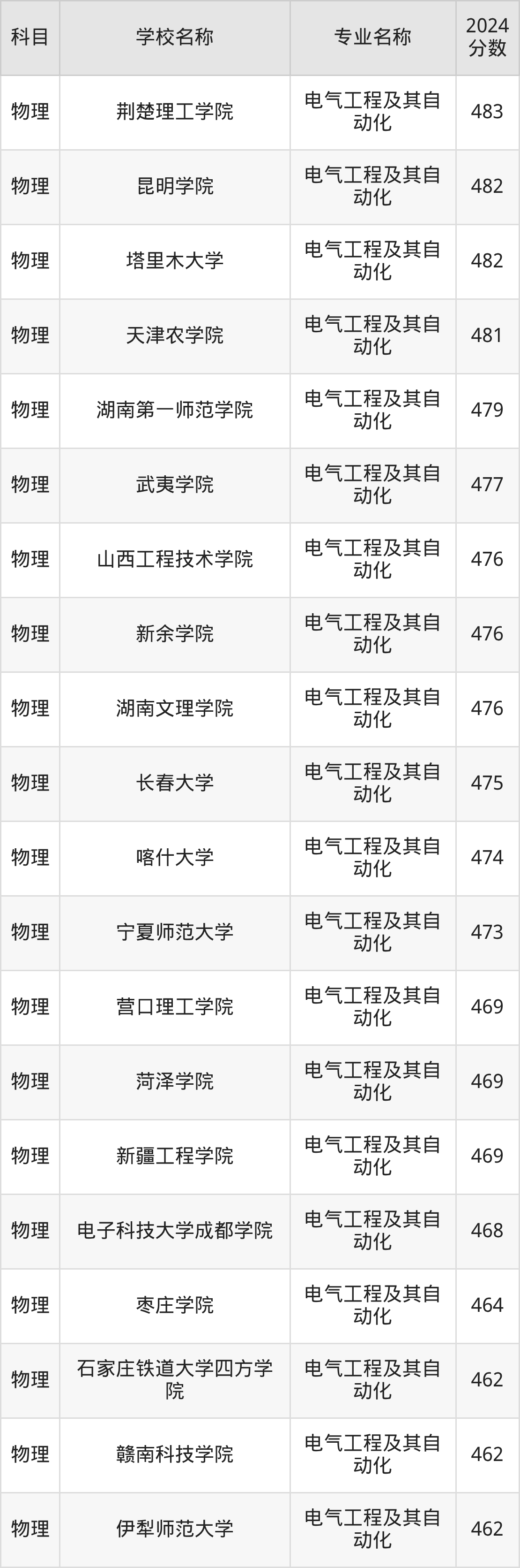| 甘肃农业大学 | 电气工程及其自 动化(地方专项 计划) | 478 |