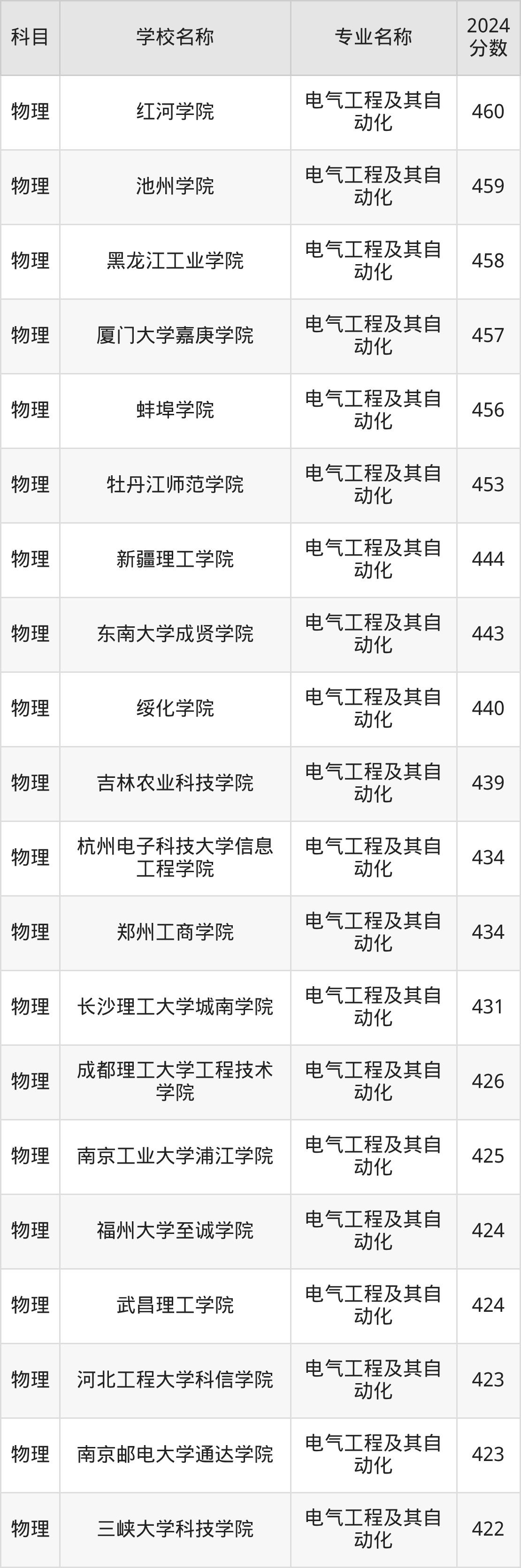 | 兰州博文科技学院 | 电气工程及其自 动化 | 370 |