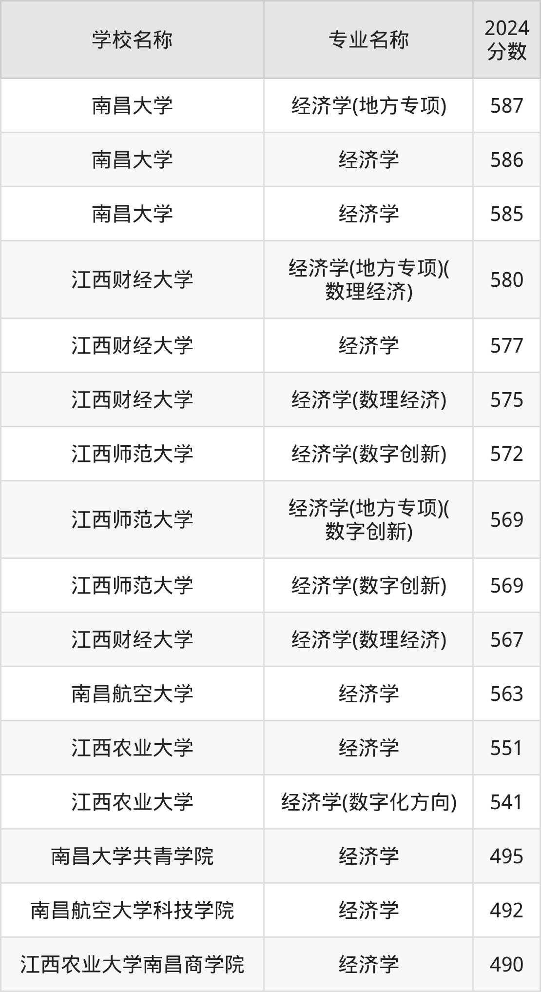 下文将为大家展示江西省大学经济学专业2024年在江西高考的最低录取分数线!