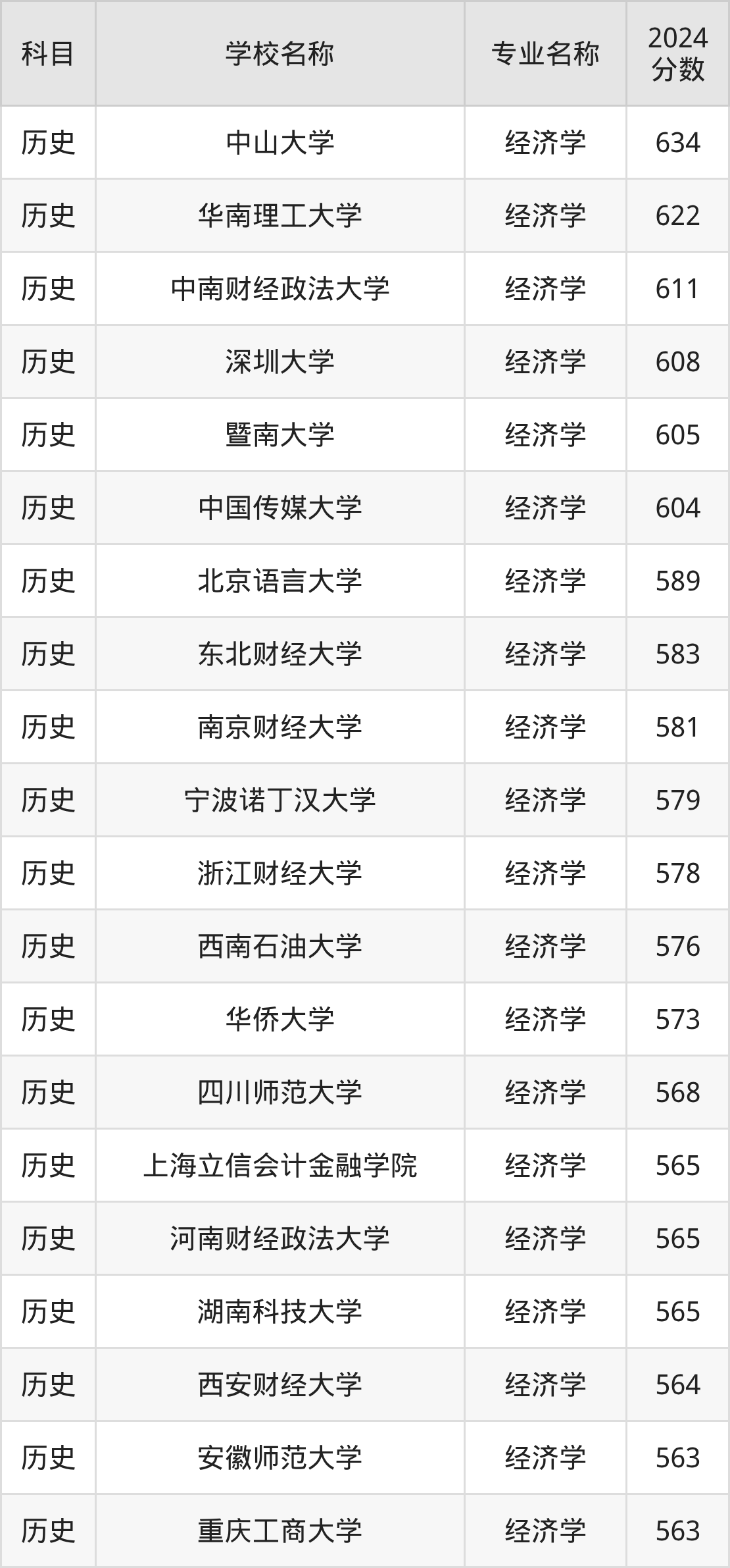 | 江西财经大学 | 经济学 | 565 |