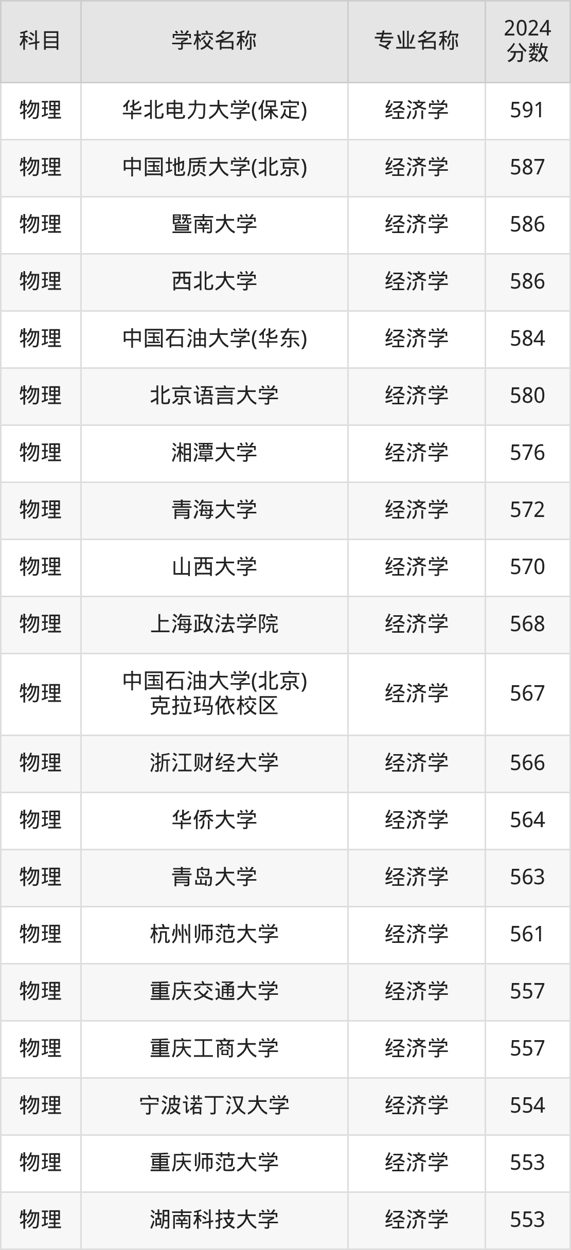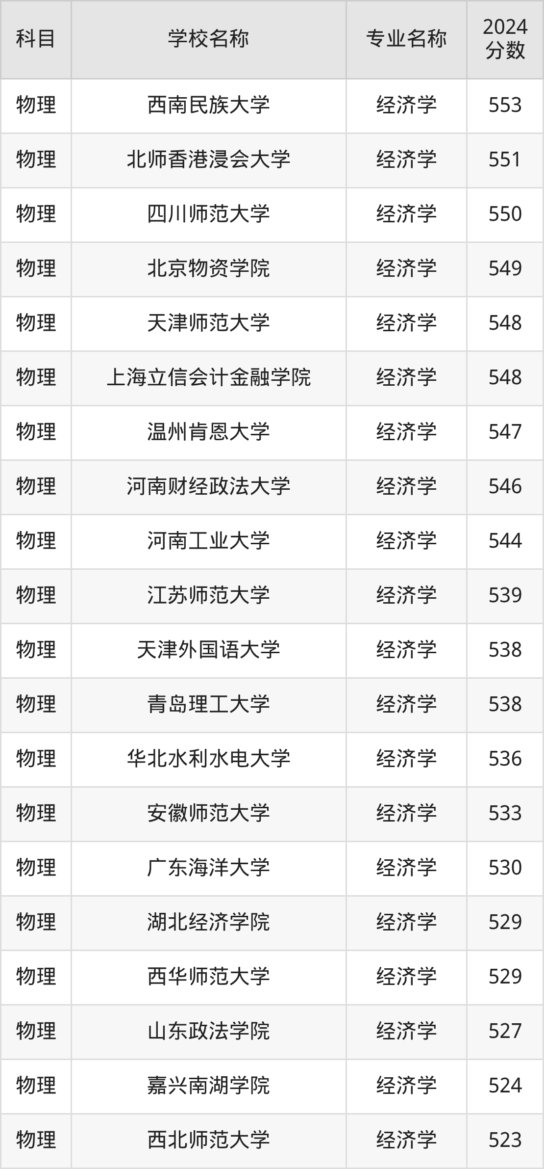 | 南昌航空大学 | 经济学 | 553 |