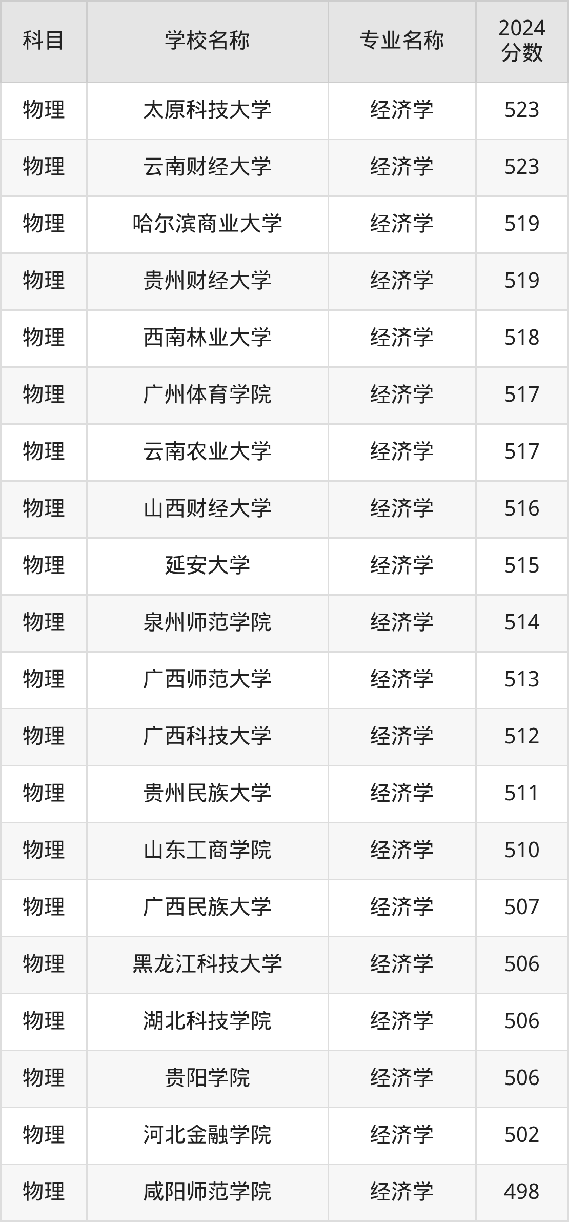 | 学校名称 | 专业名称 | 2024 分数 |