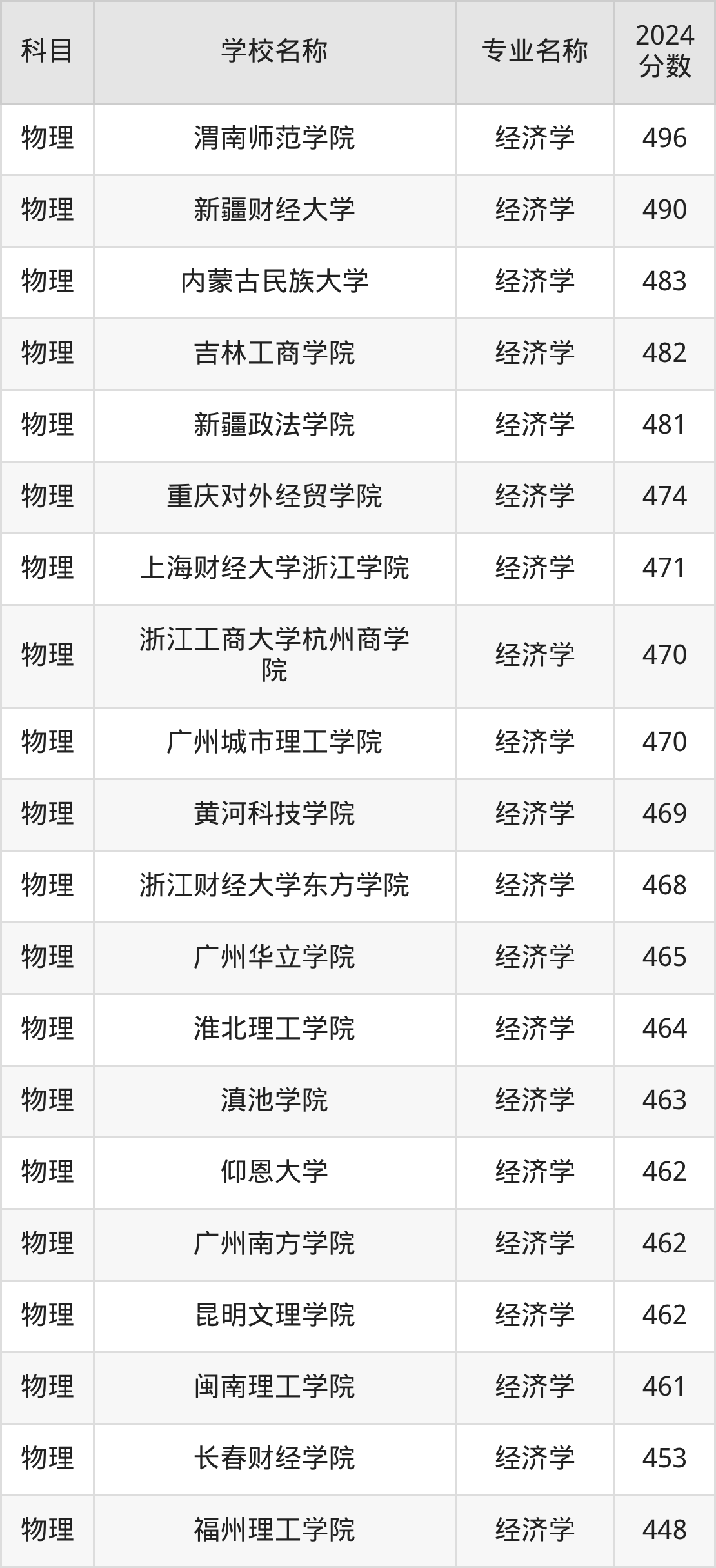 | 江西农业大学南昌商学 院 | 经济学 | 467 |