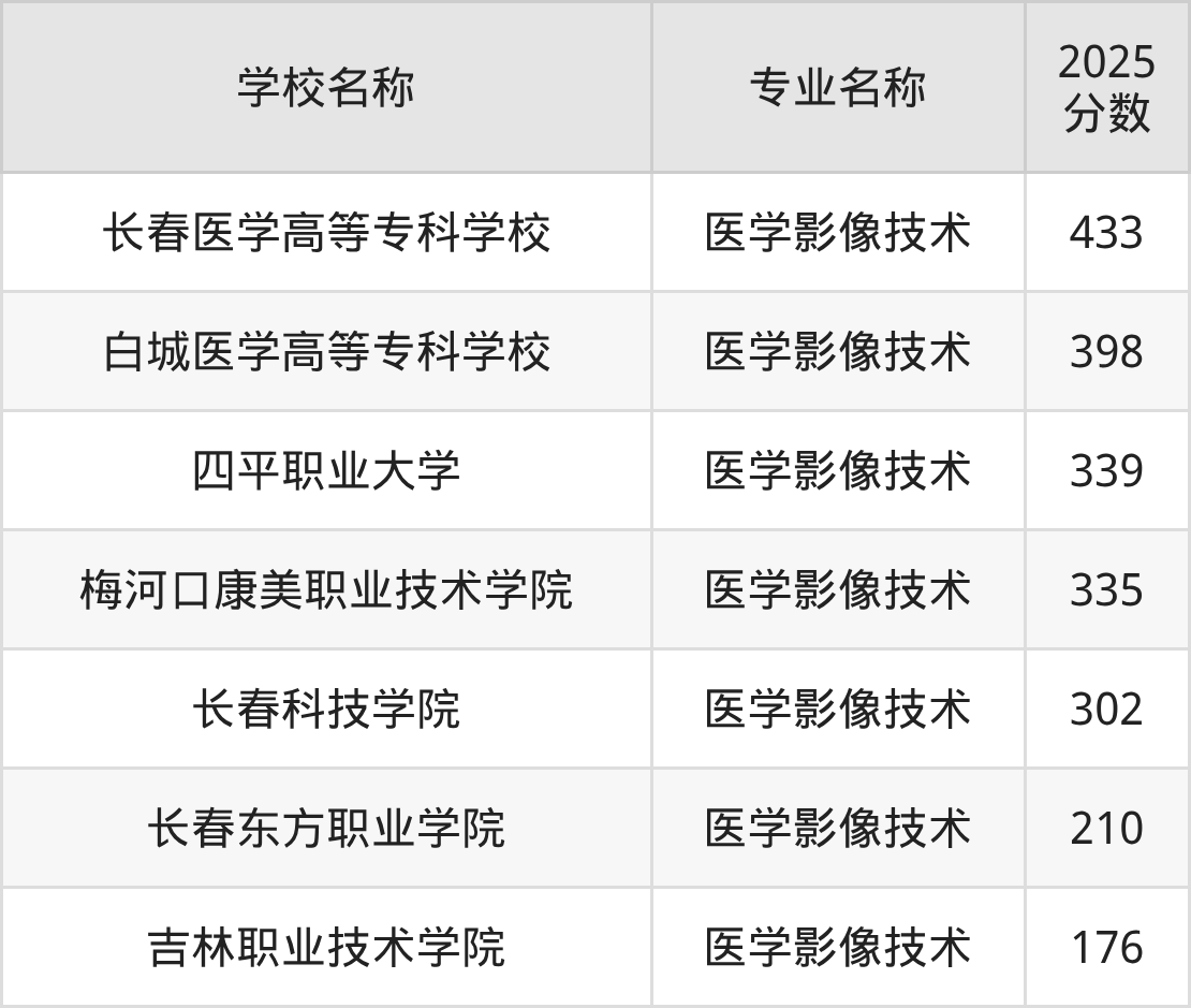 下文将为大家展示吉林省大学医学影像技术专业2025年在吉林高考的最低录取分数线!