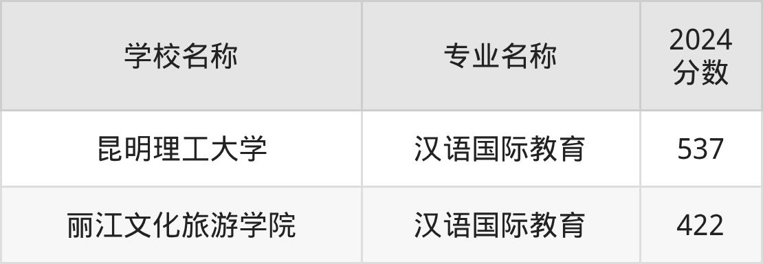 在直接以“汉语国际教育”的名称招生的云南省大学中,昆明理工大学的分数线最高、排名第一名,在文科的最低分是576分,全省排名前7147位的高考生才有较大机会被录取。