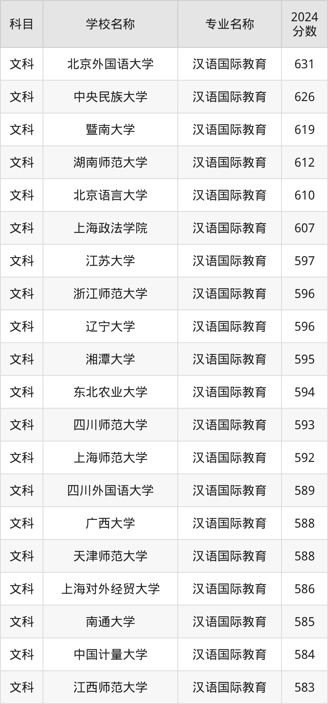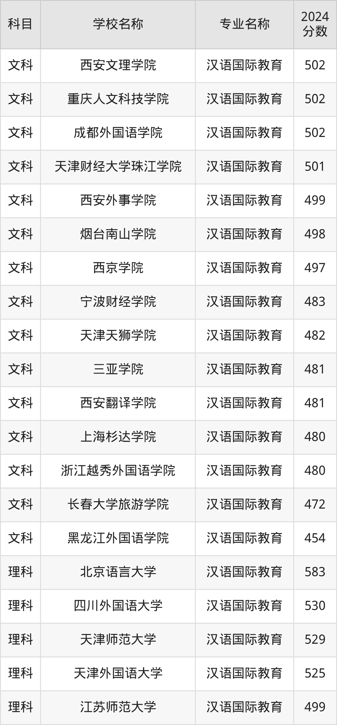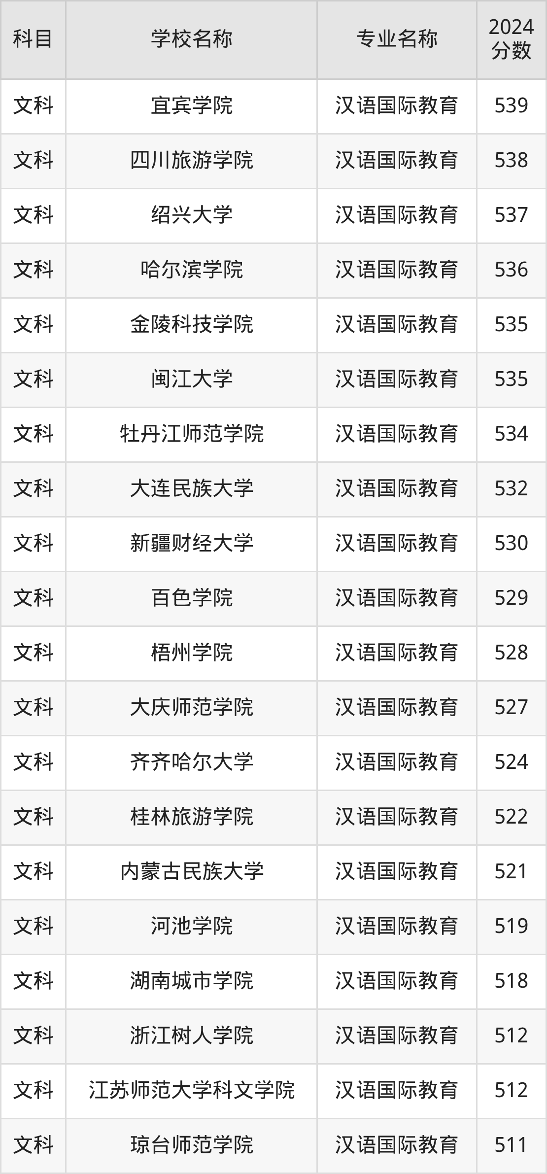 | 昆明理工大学津桥学院 | 汉语国际教育 | 503 |