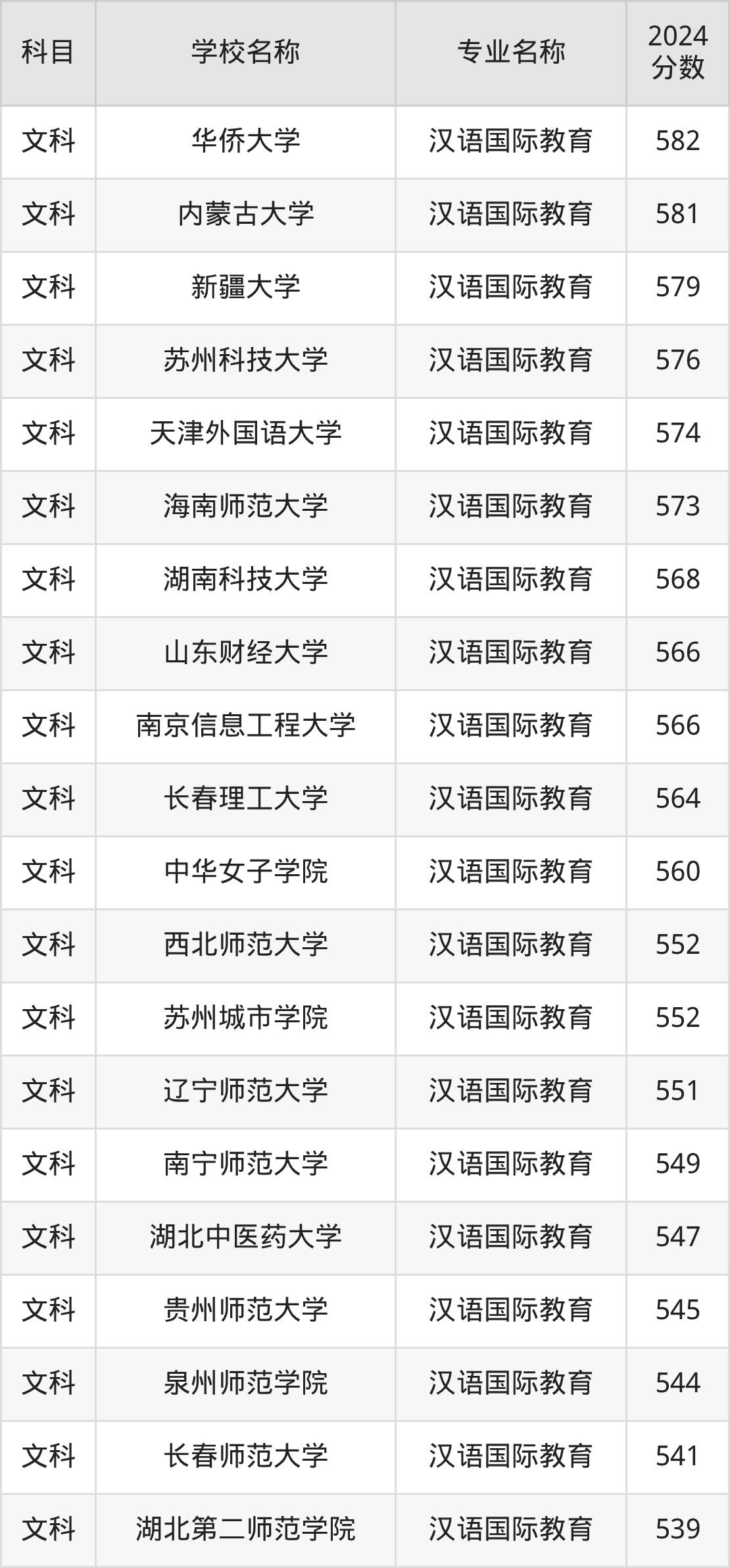 | 昆明理工大学 | 汉语国际教育 | 576 |