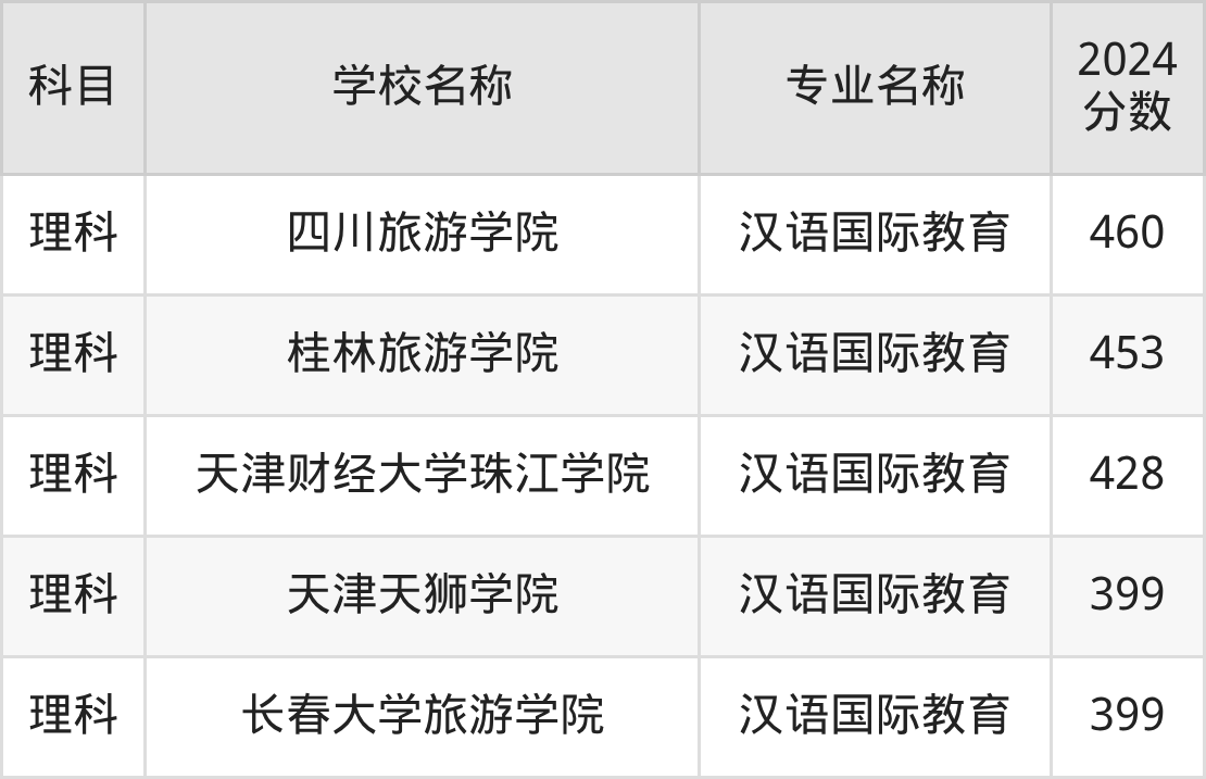 | 丽江文化旅游学院 | 汉语国际教育 | 485 |