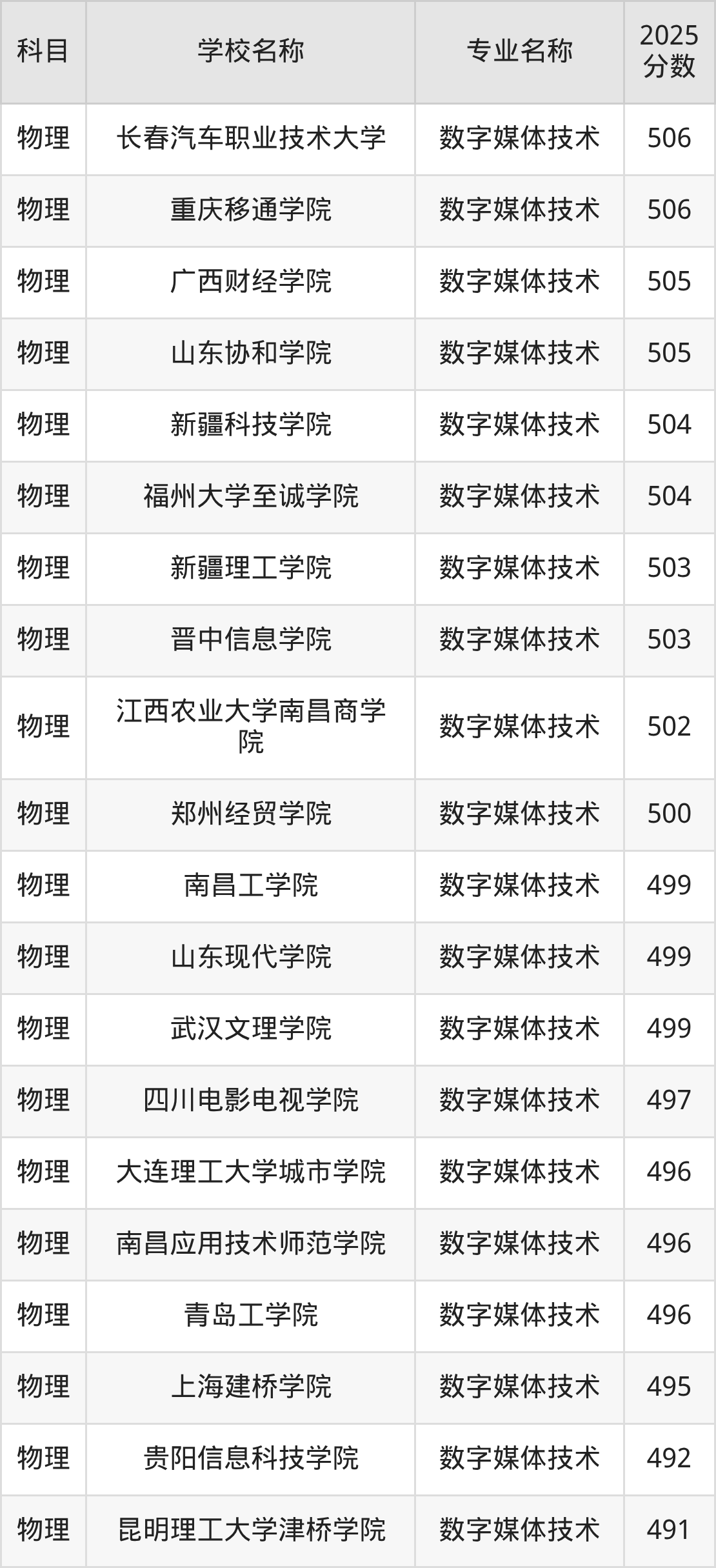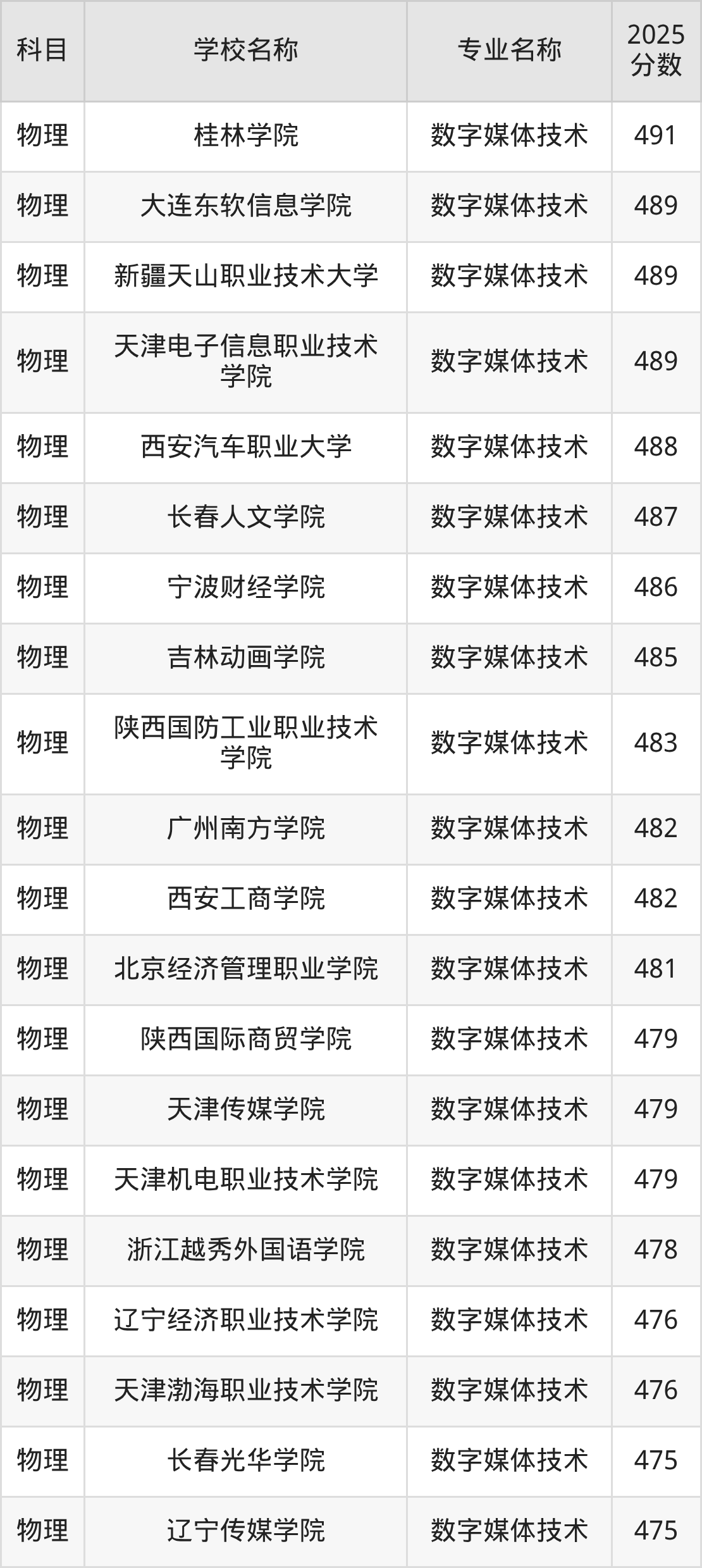 | 河北传媒学院 | 数字媒体技术 | 491 |