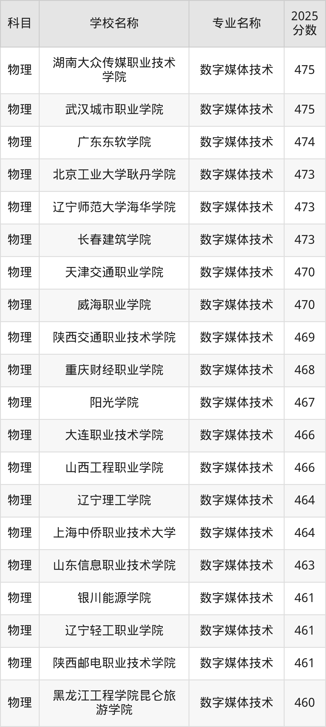 | 河北软件职业技术学院 | 数字媒体技术 | 462 |