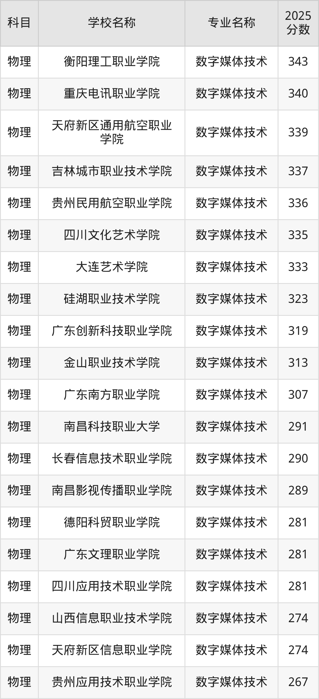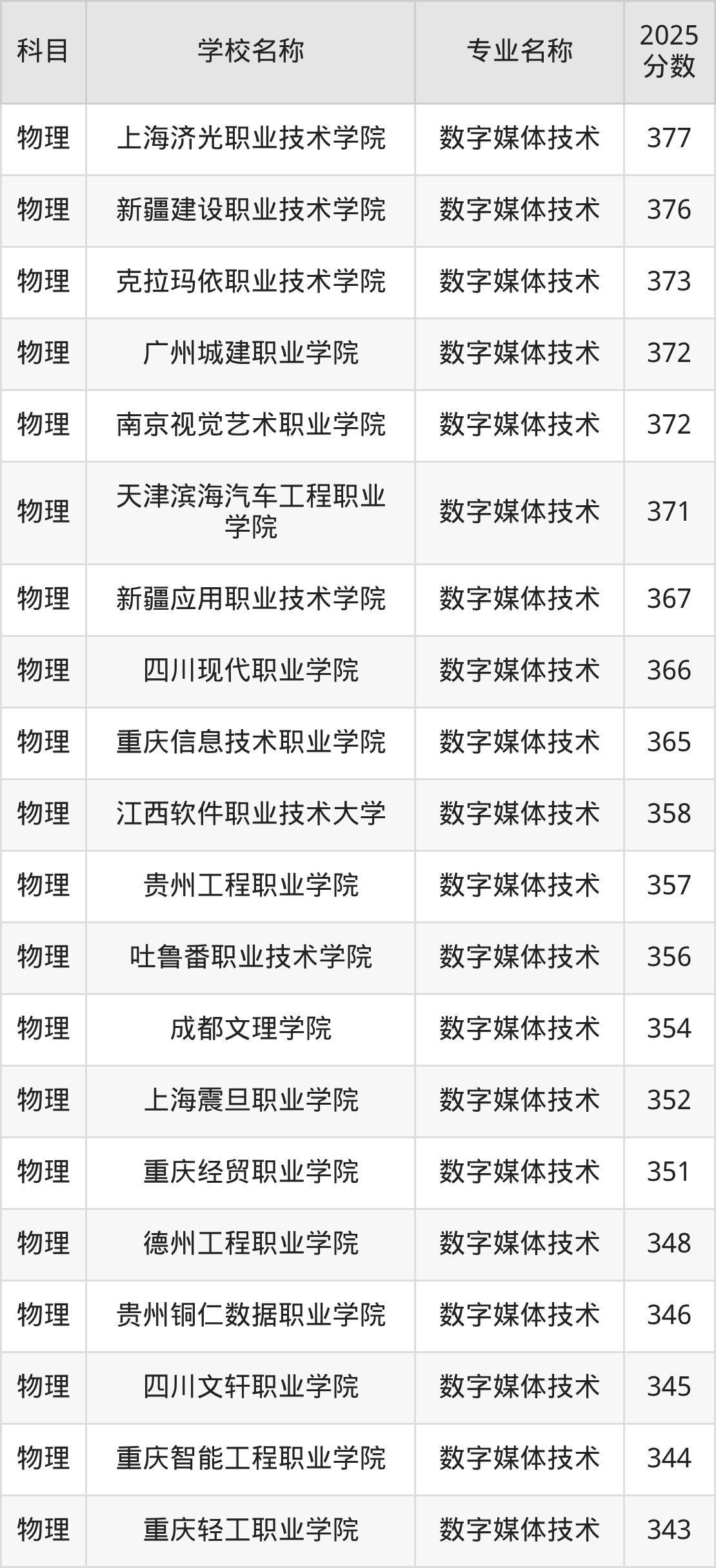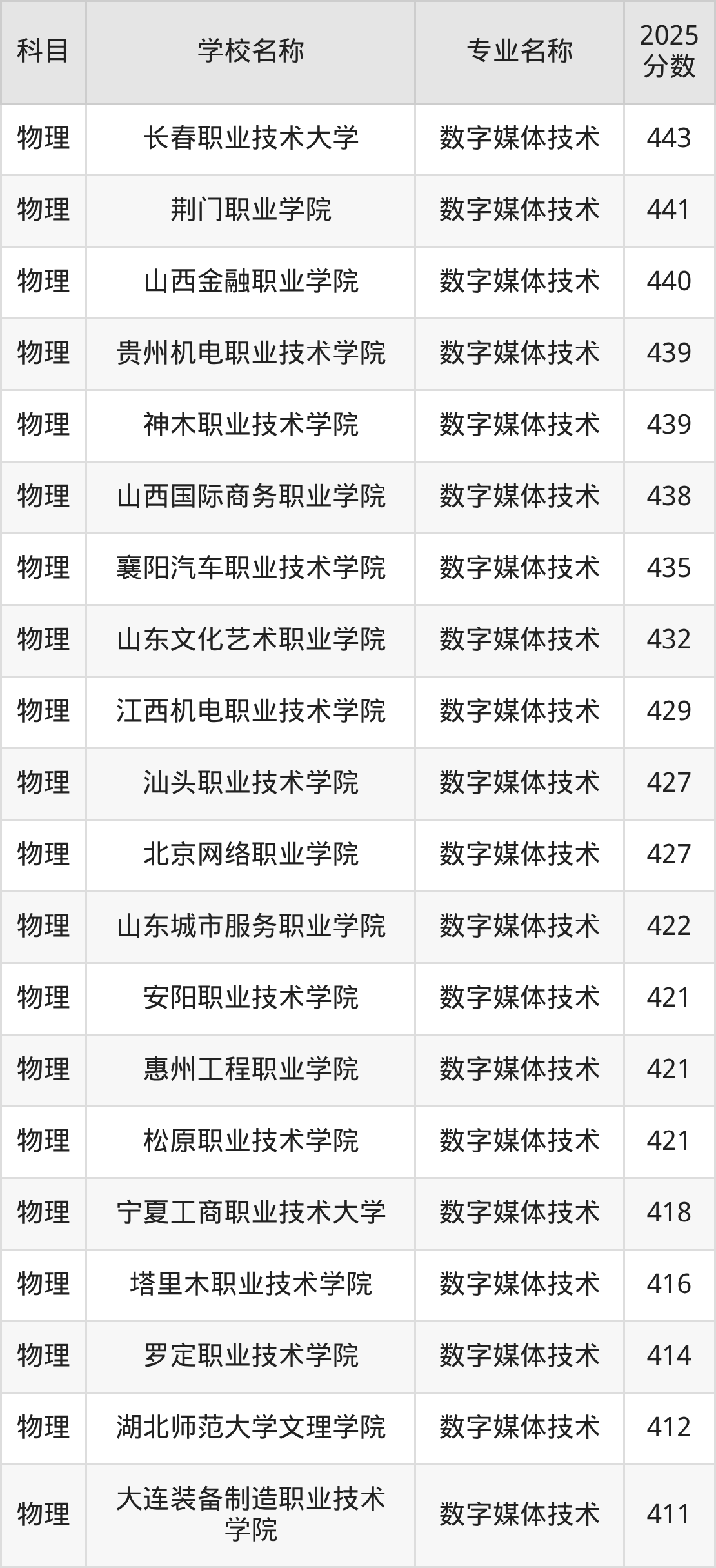 | 廊坊职业技术学院 | 数字媒体技术 | 445 |