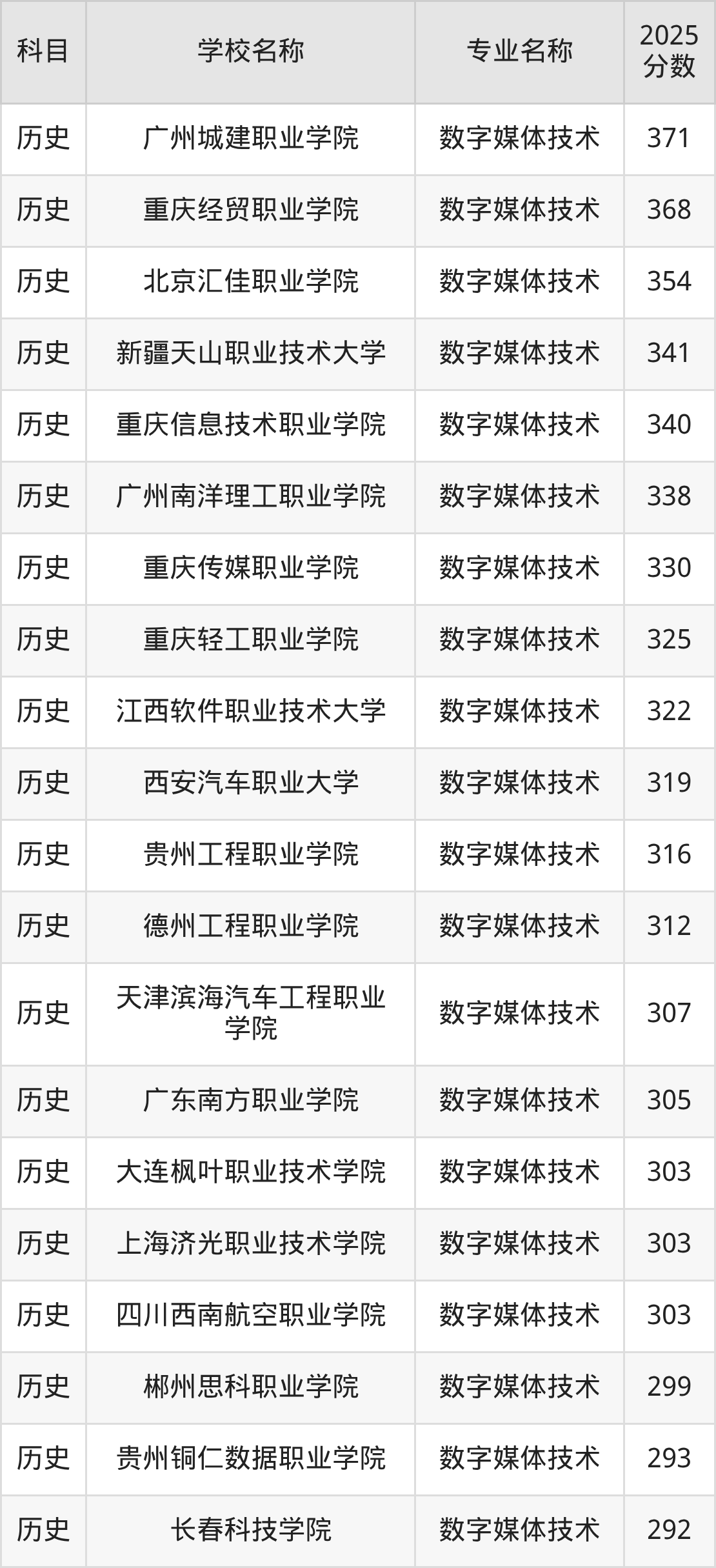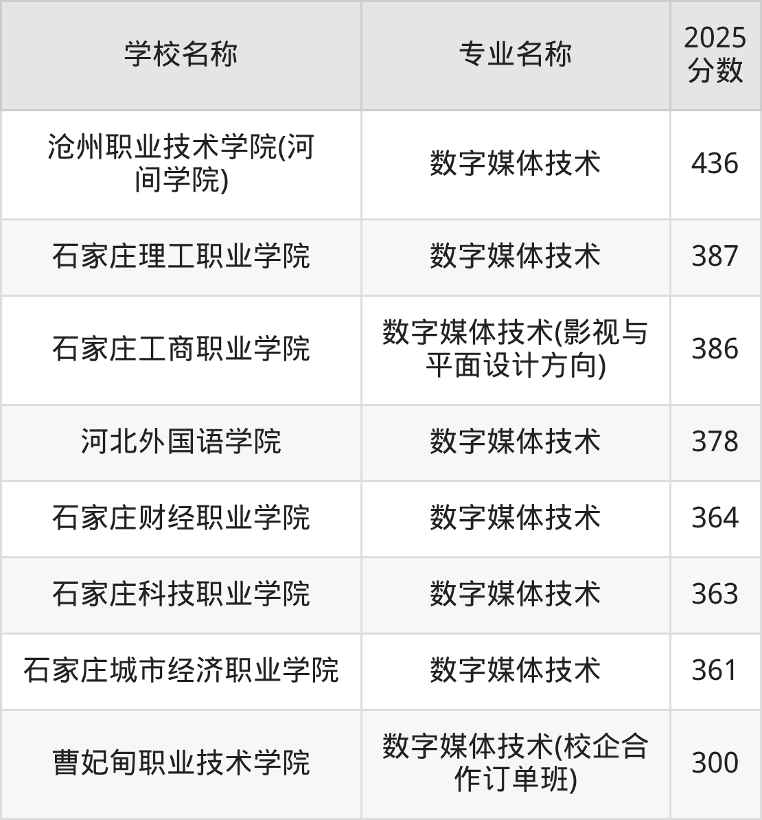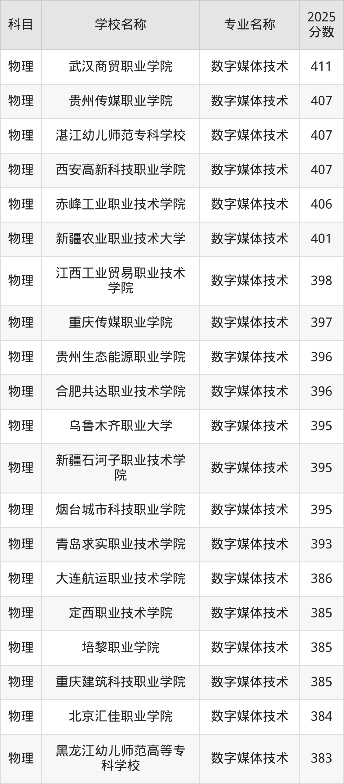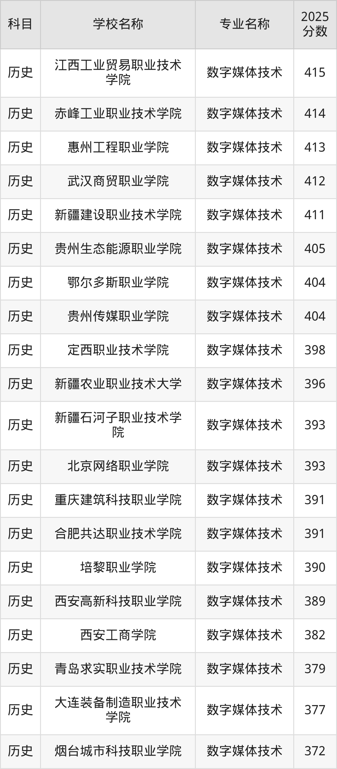 | 石家庄理工职业学院 | 数字媒体技术 | 395 |