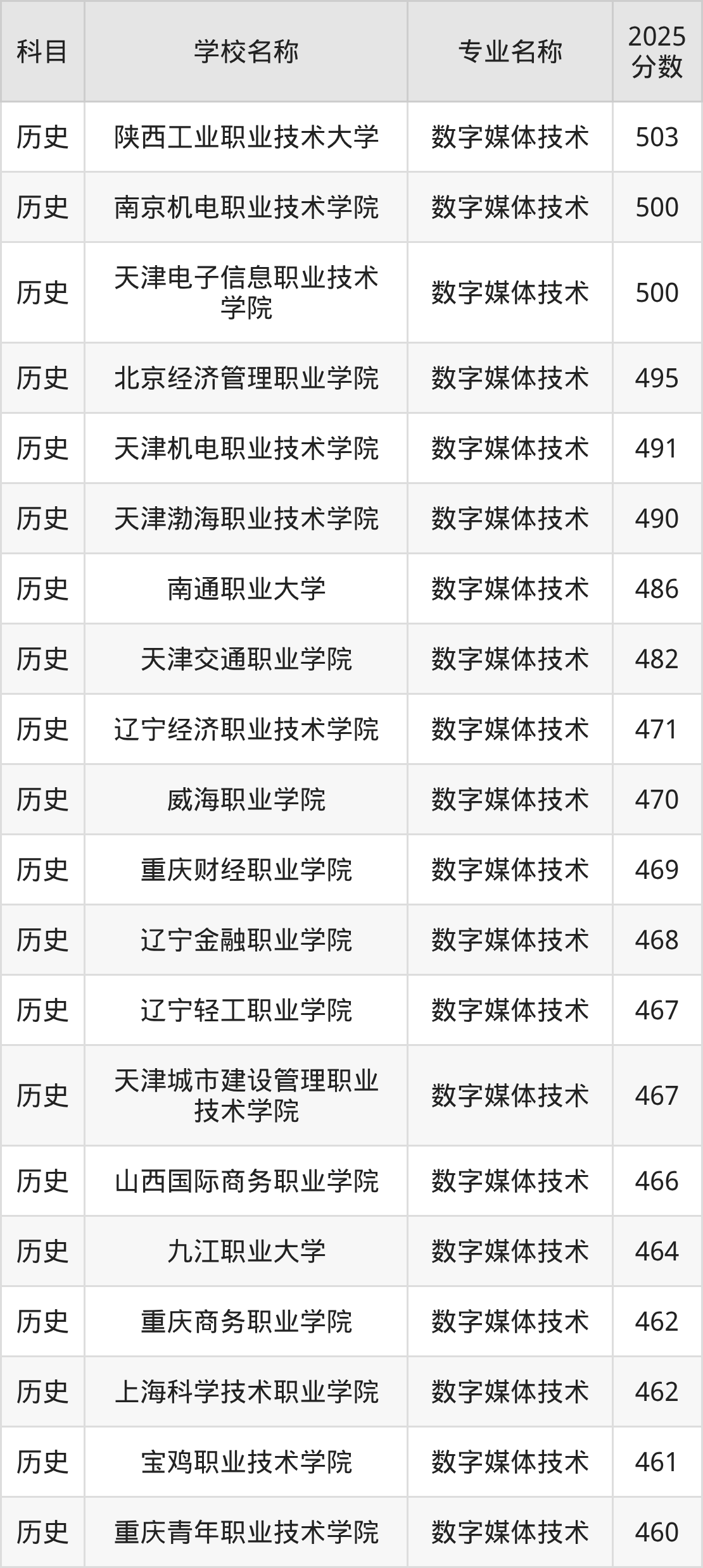 | 河北化工医药职业技术 学院 | 数字媒体技术 | 464 |