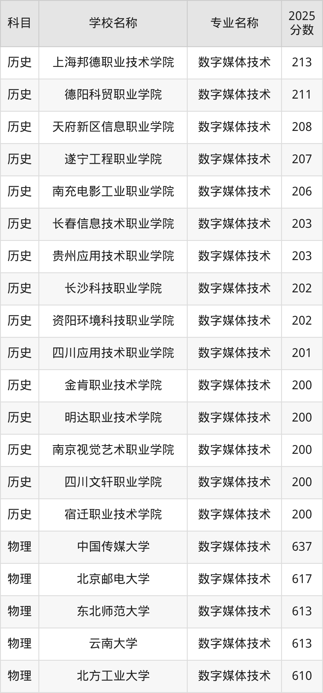 | 学校名称 | 专业名称 | 2025 分数 |