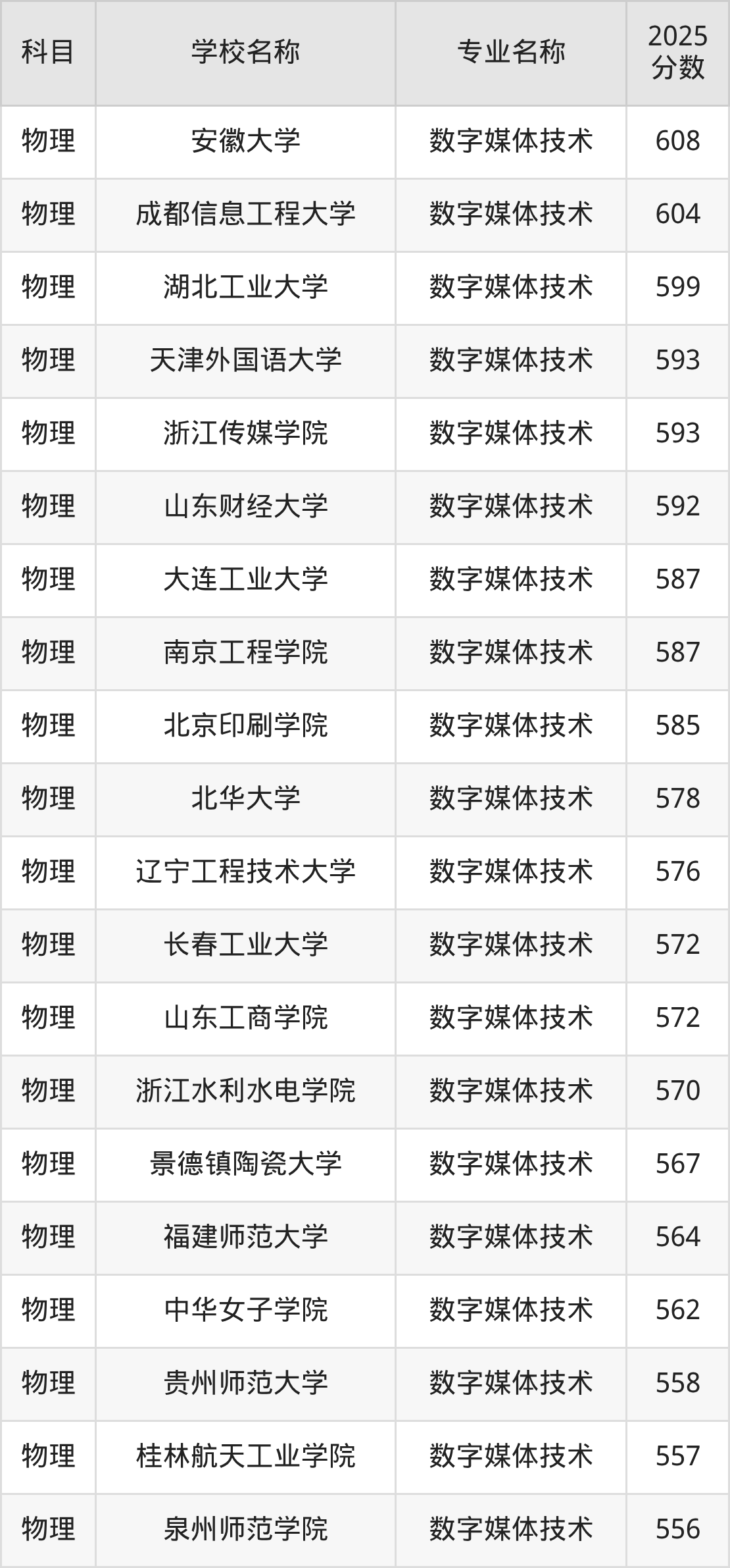 河北高考物理组:数字媒体技术专业的最低分是214分~541分