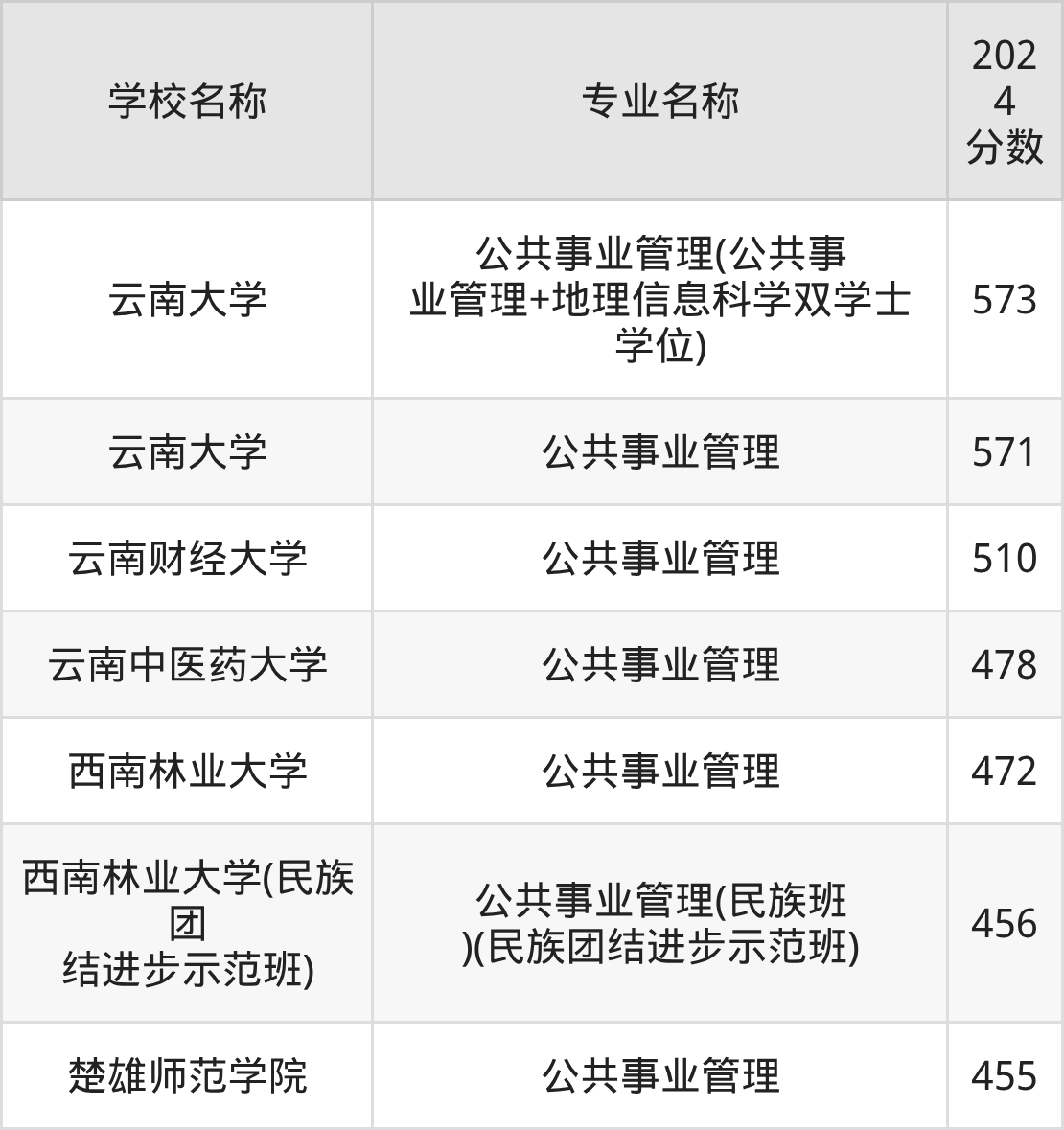 下文将为大家展示云南省大学公共事业管理专业2024年在云南高考的最低录取分数线!