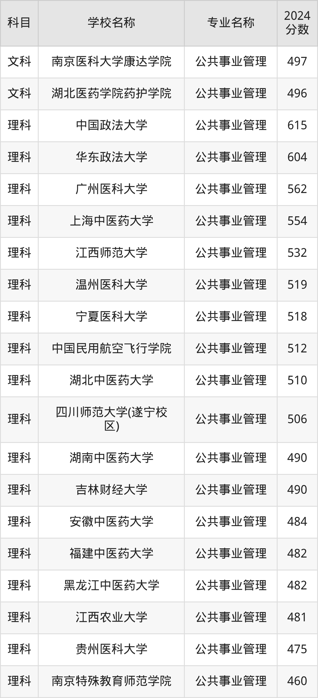 | 昆明医科大学海源学院 | 公共事业管理 | 485 |