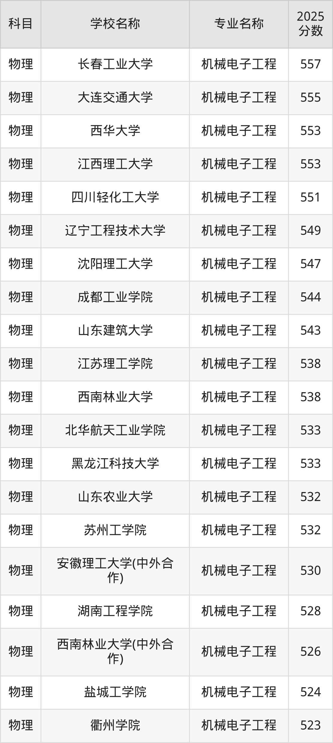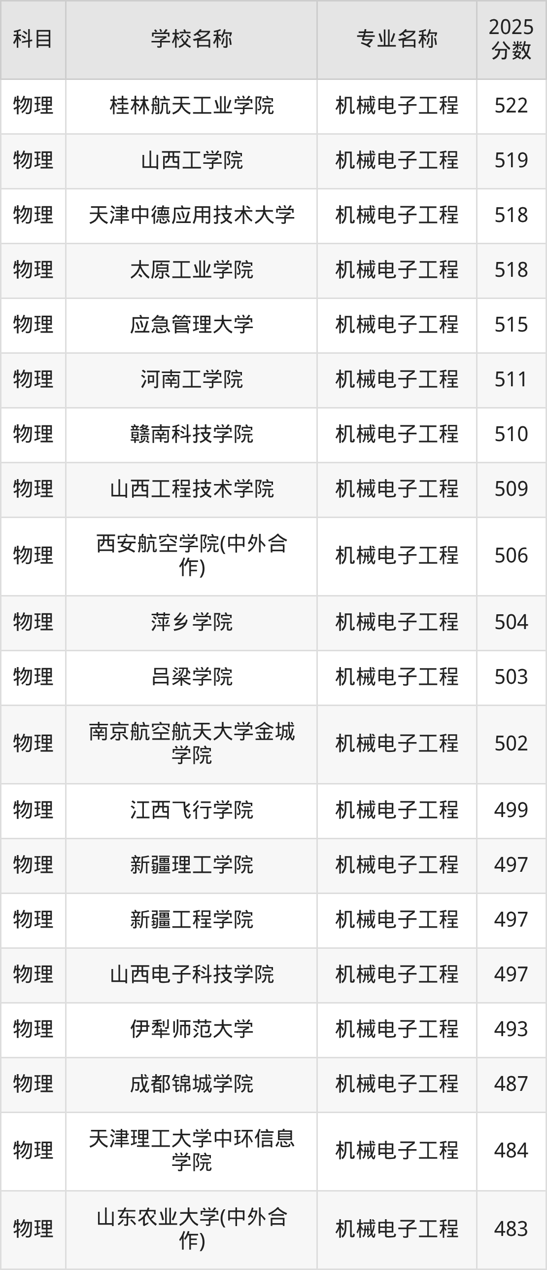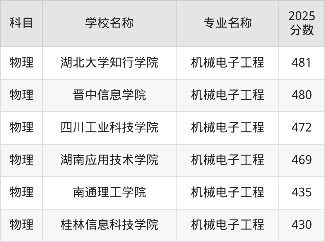 | 学校名称 | 专业名称 | 2025 分数 |