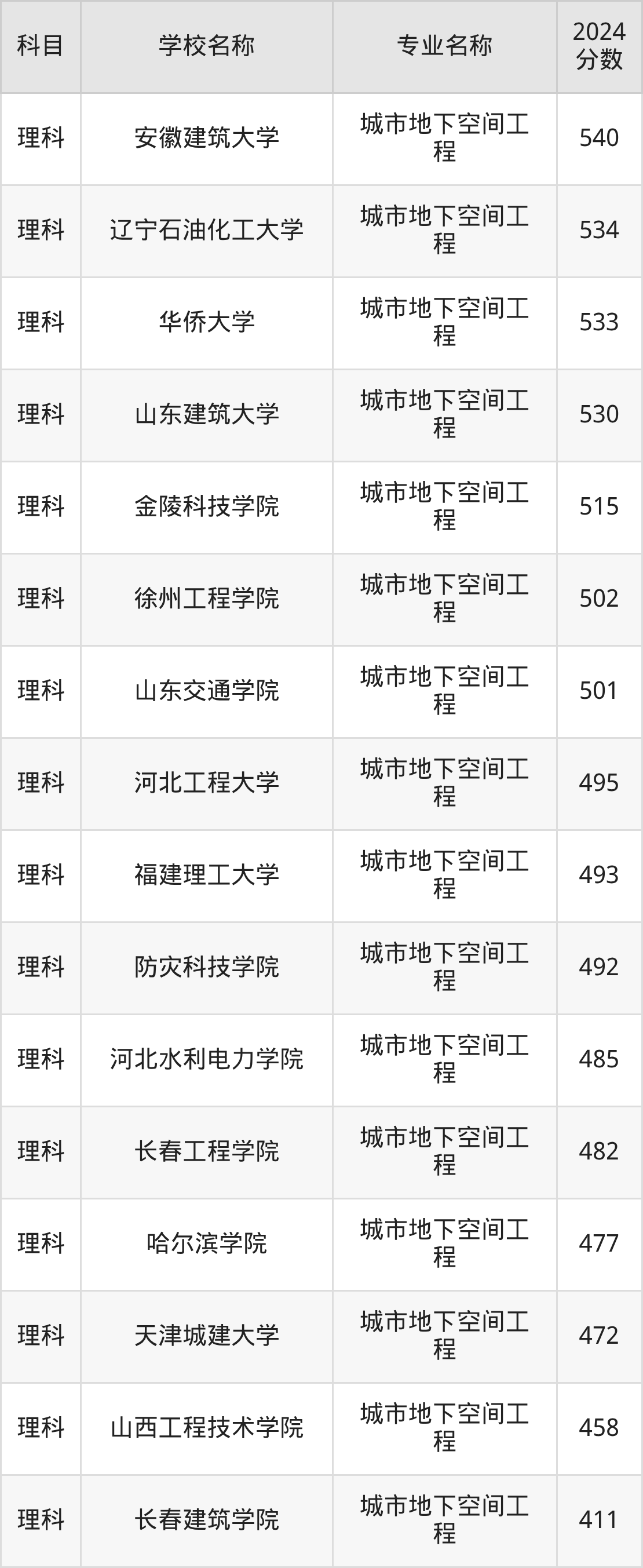 | 华北水利水电大学(江 淮校区) | 城市地下空间工 程 | 511 |