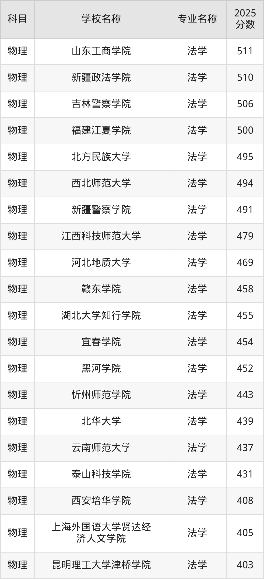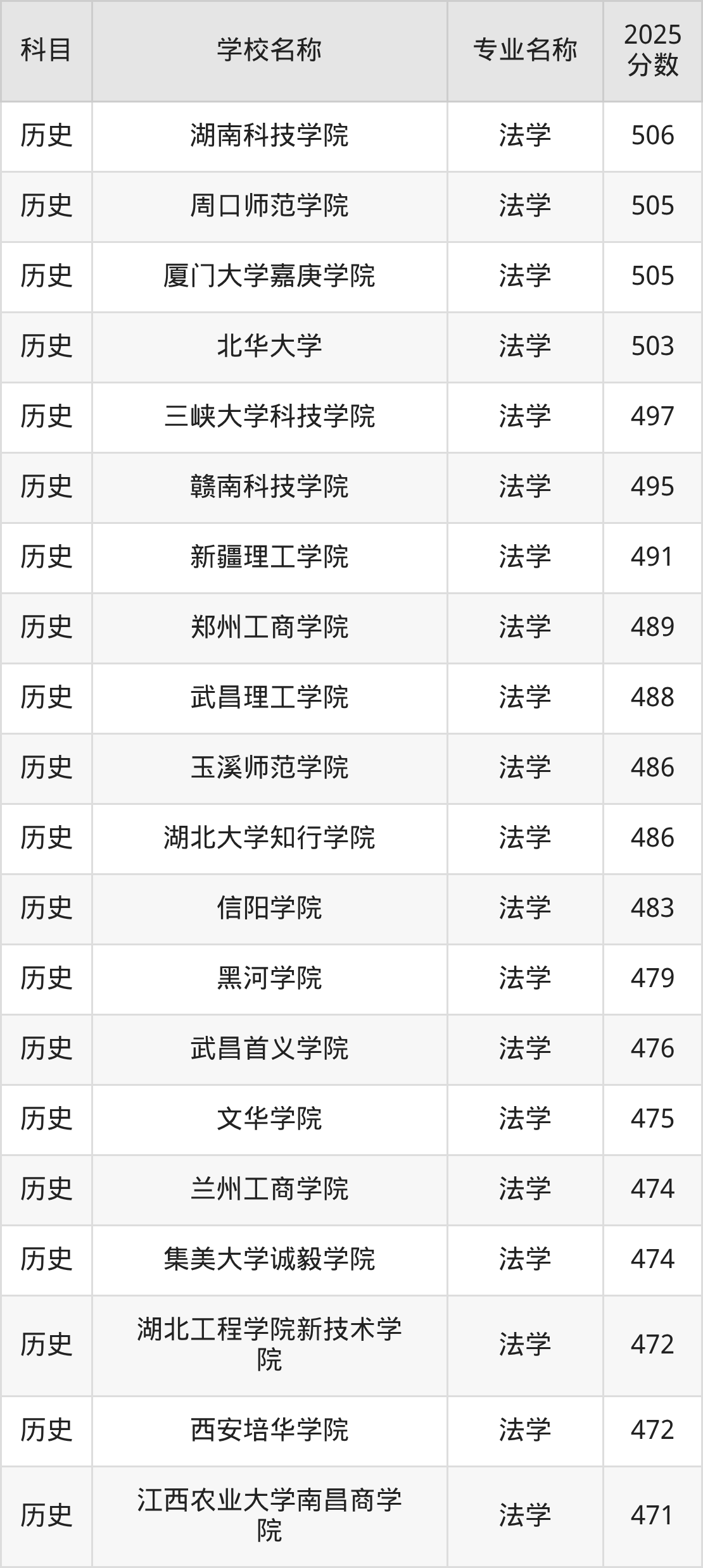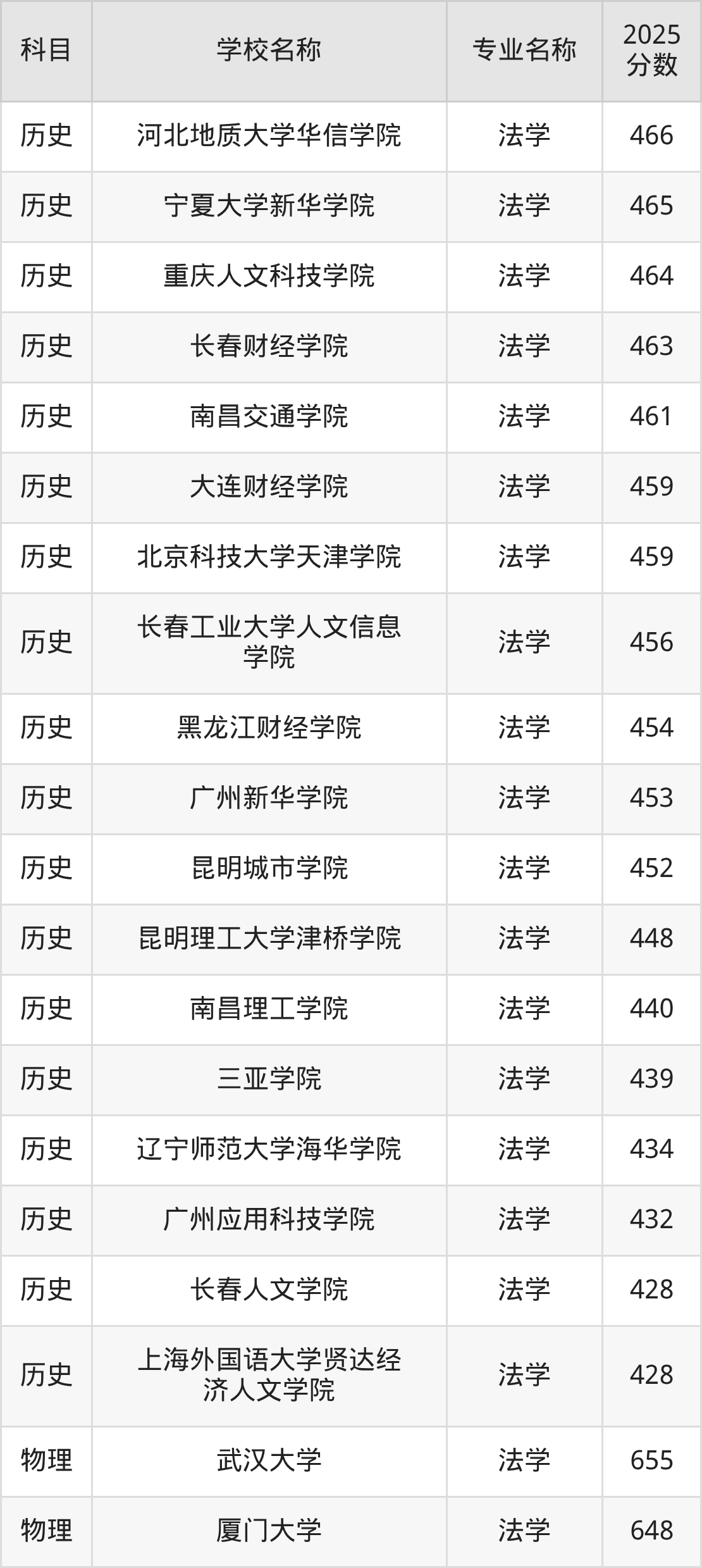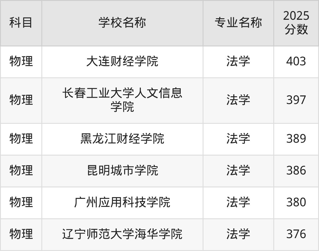 | 学校名称 | 专业名称 | 2025 分数 |