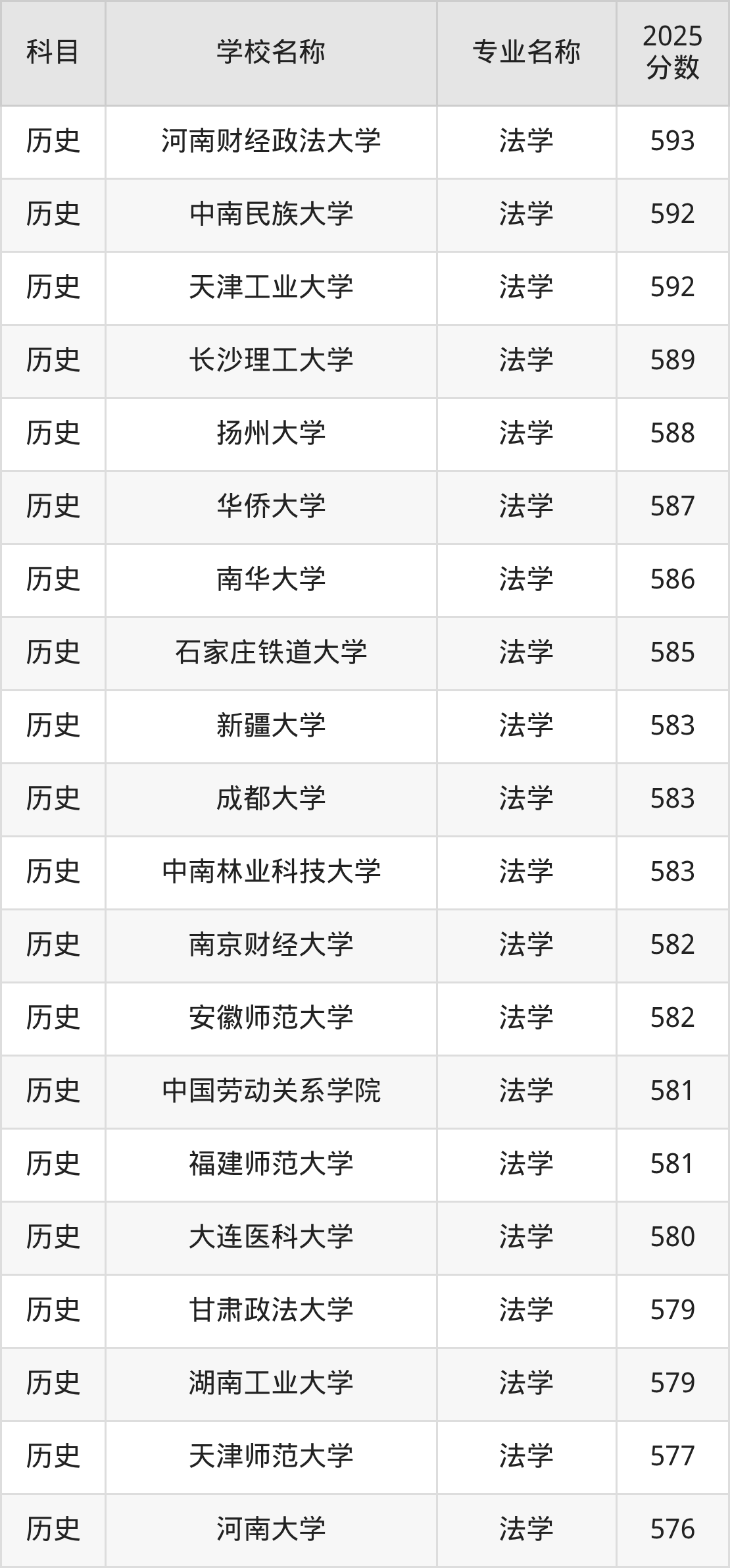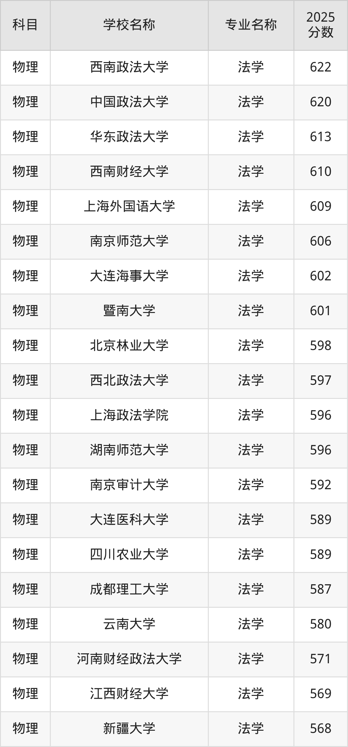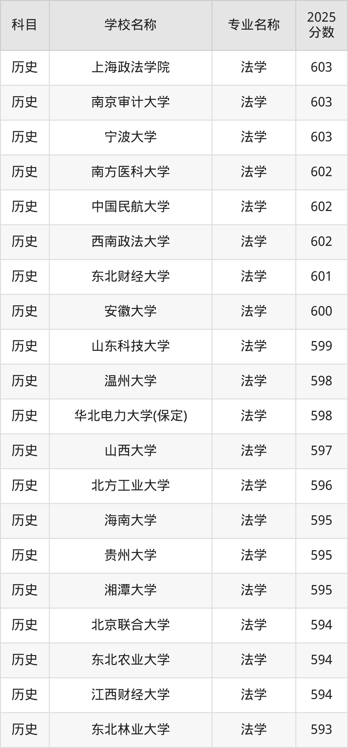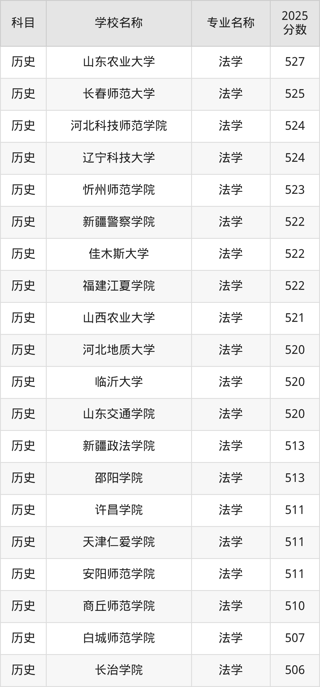 | 学校名称 | 专业名称 | 2025 分数 |