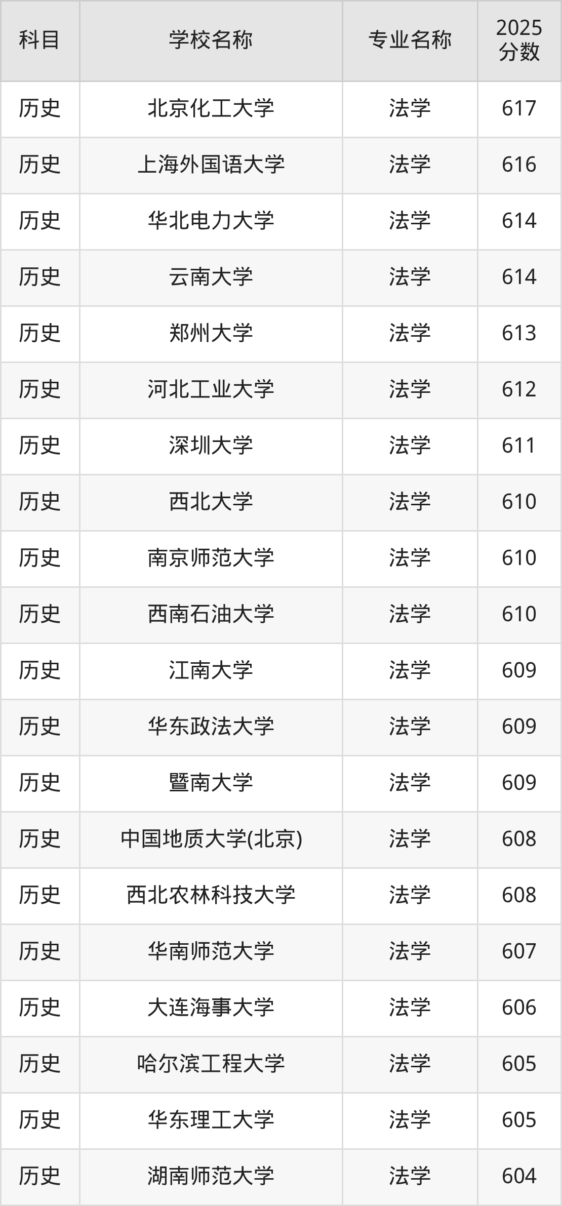 | 内蒙古大学 | 法学 | 605 |