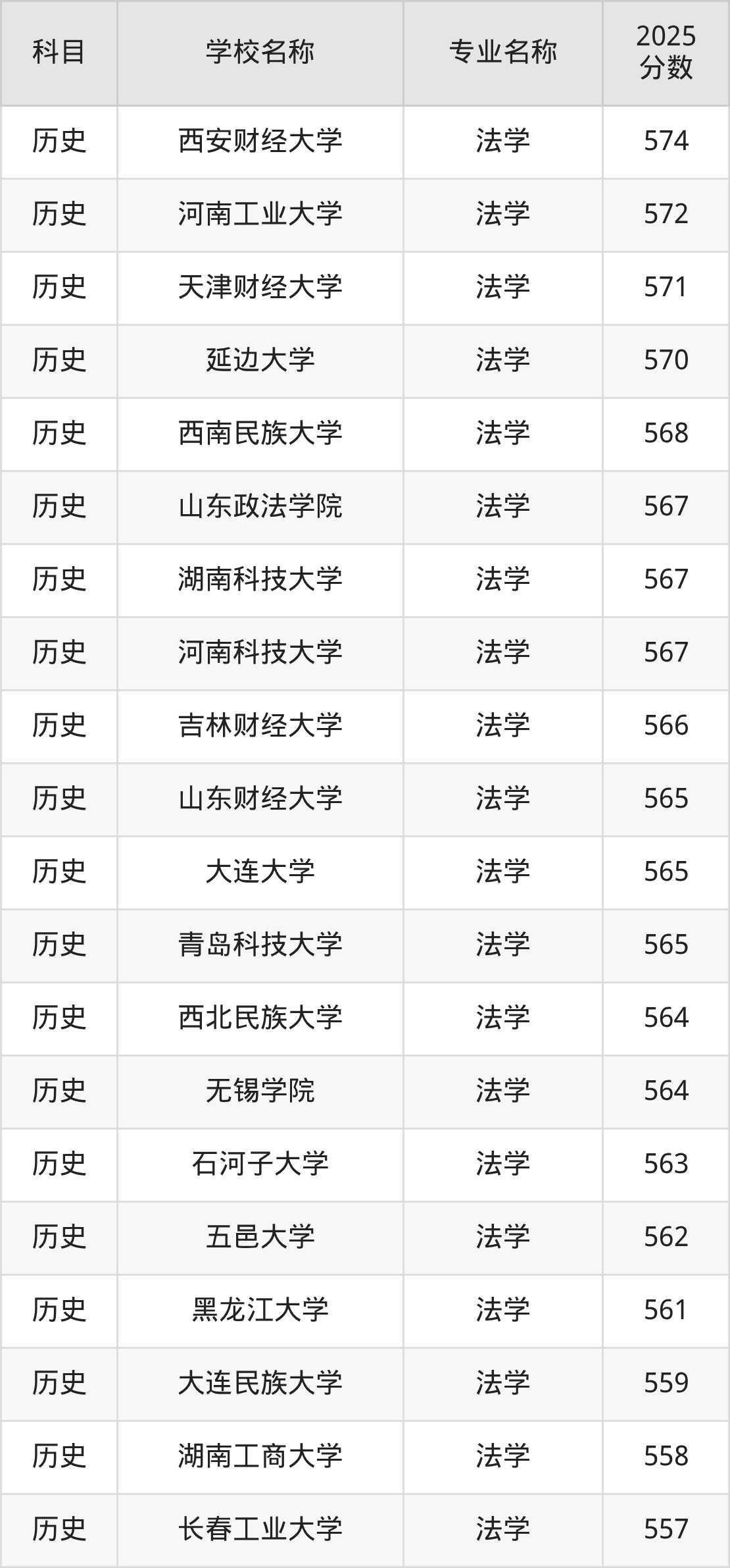 | 内蒙古财经大学 | 法学 | 563 |