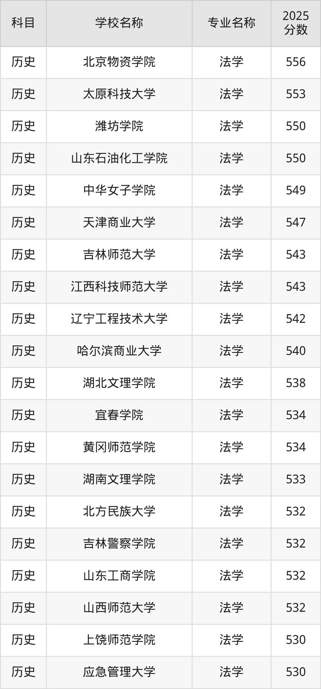 | 内蒙古警察学院 | 法学 | 538 |