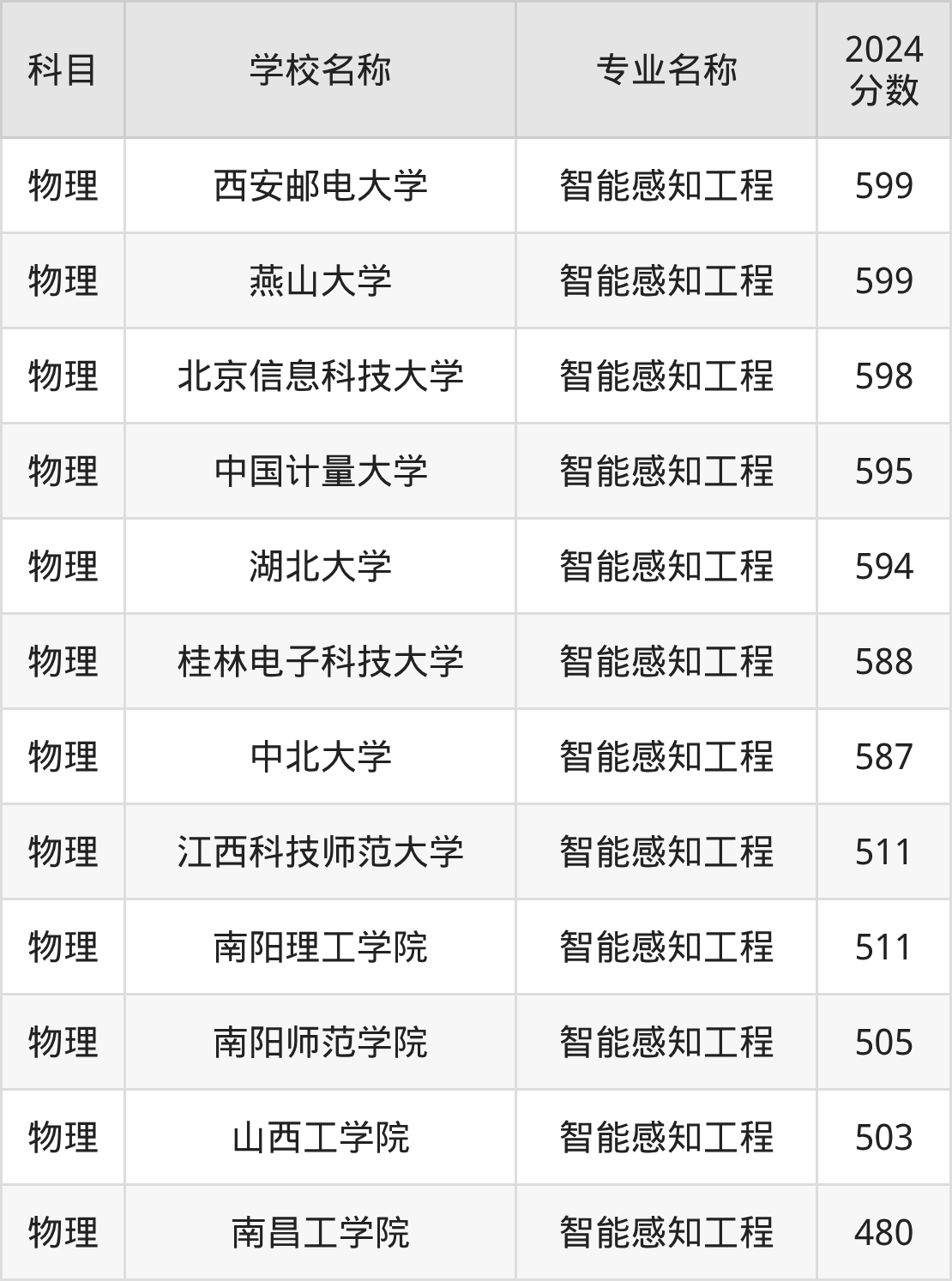 通过上文大家可以知晓,在安徽省内招智能感知工程专业的院校数量较少,所以下文将为2026届高考生继续展示:省外大学的智能感知工程专业2024年在安徽高考的录取情况,包含西安邮电大学、燕山大学、北京信息科技大学、中国计量大学、湖北大学。