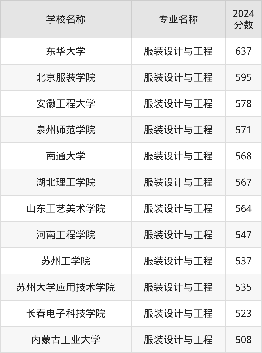 | 浙江理工大学科技与艺 术学院 | 服装设计与工程 | 542 |