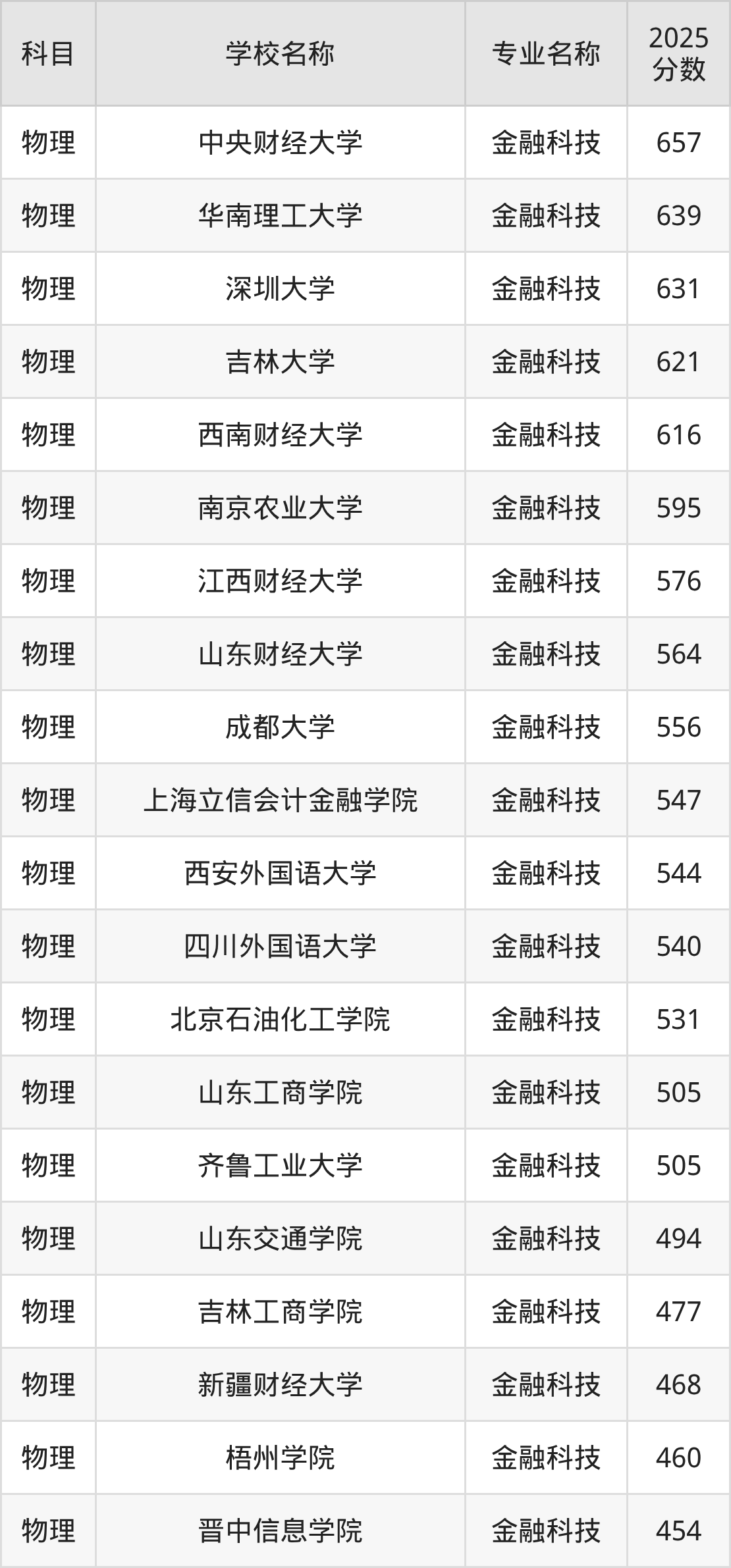 | 学校名称 | 专业名称 | 2025 分数 |
