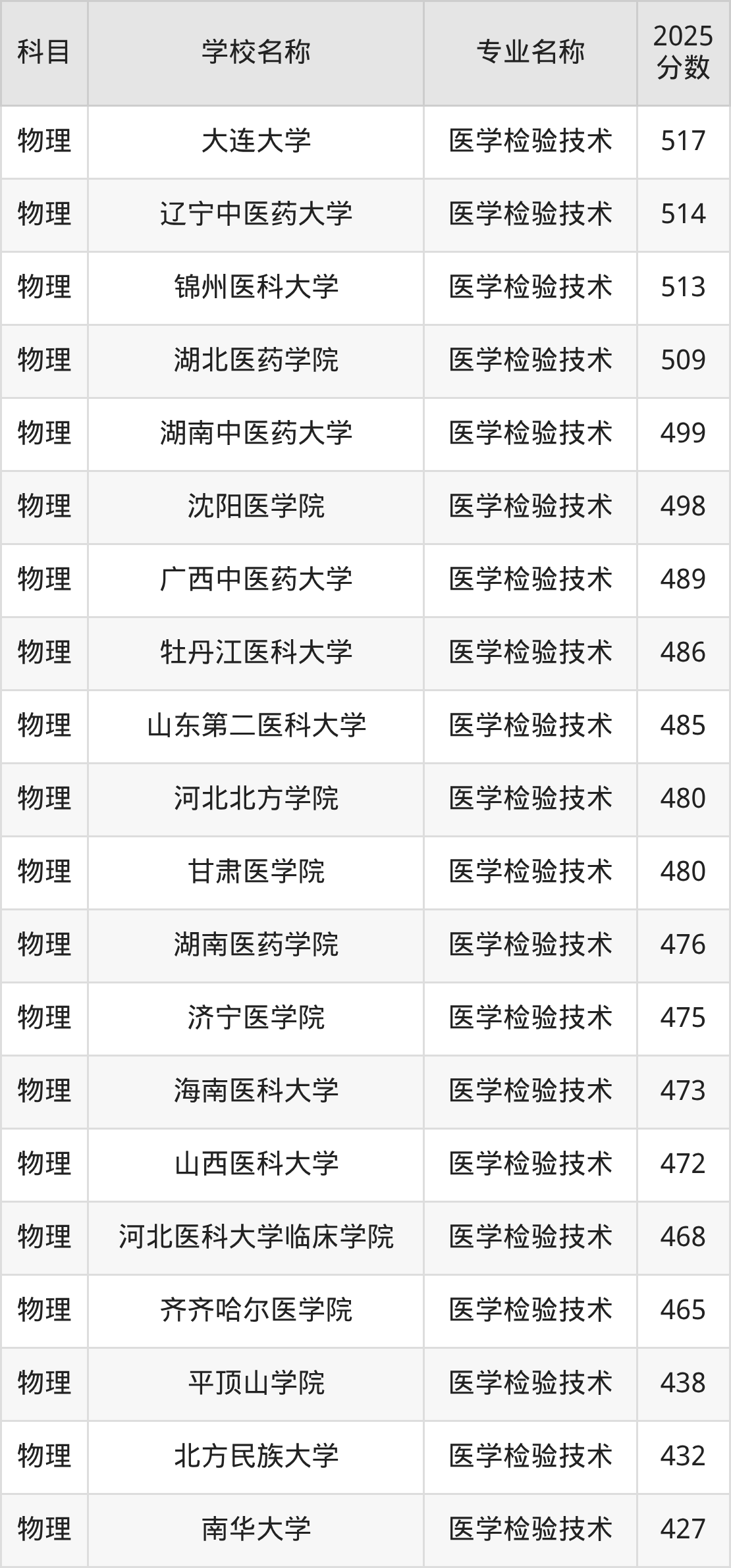 | 吉林医药学院 | 医学检验技术 | 459 |