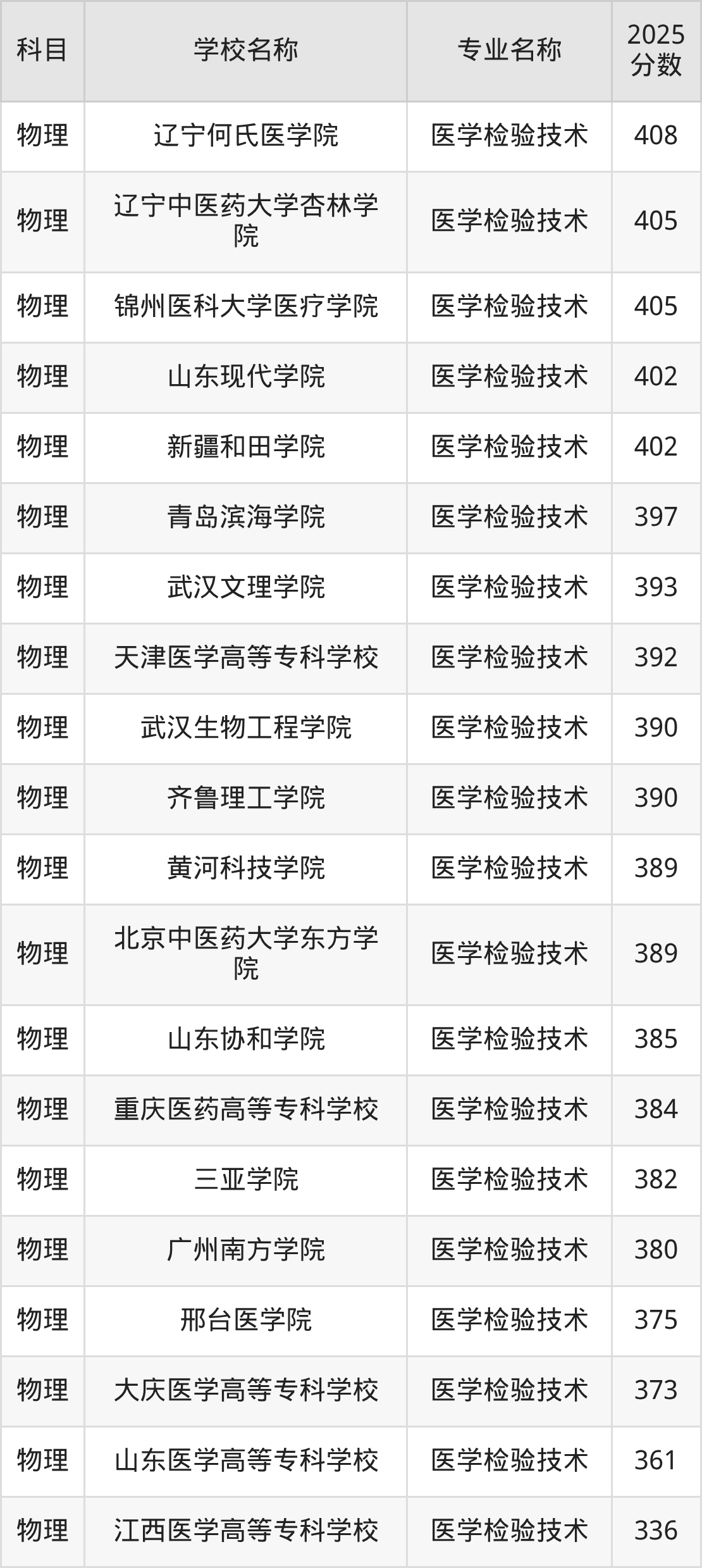 | 白城医学高等专科学校 | 医学检验技术 | 349 |