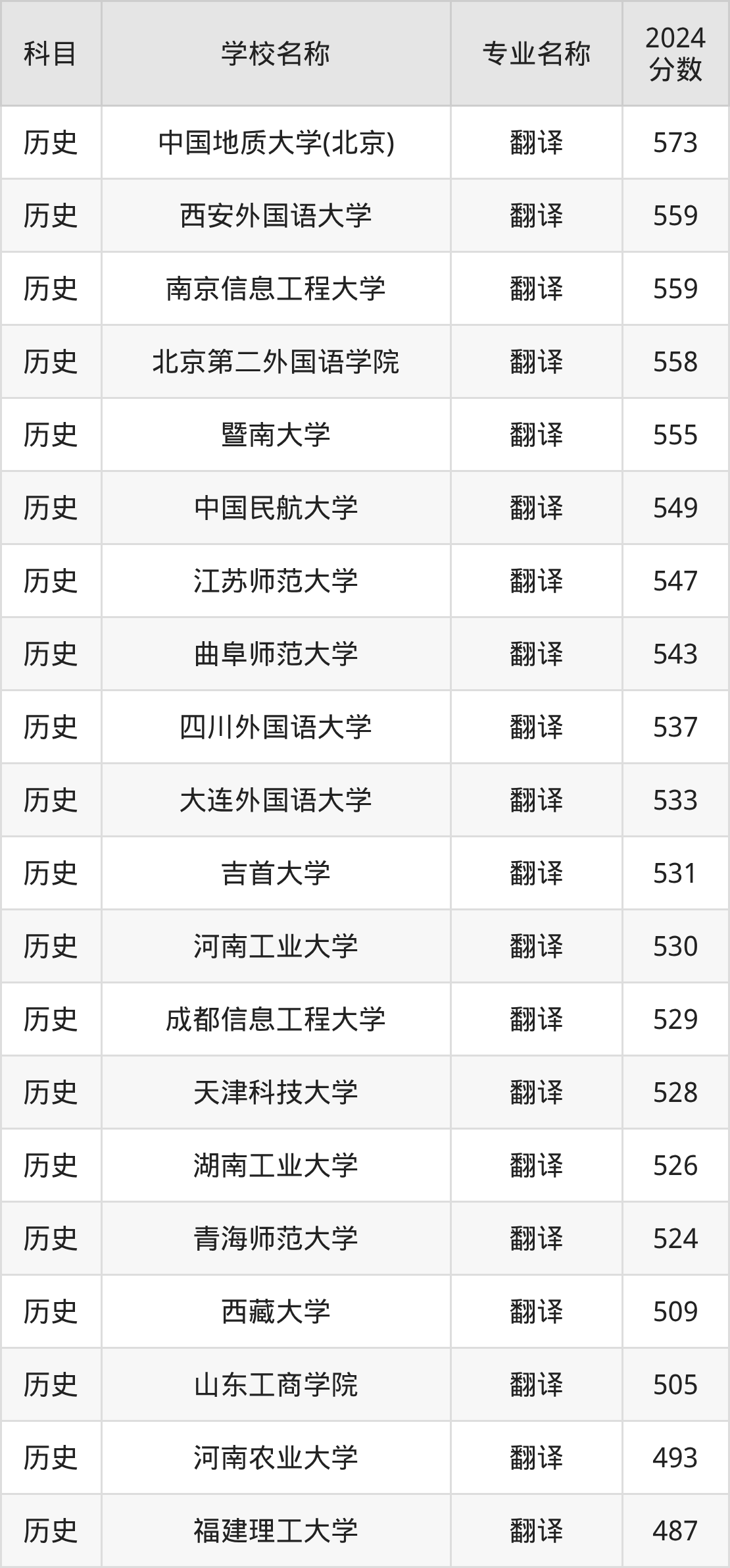 甘肃高考历史组:翻译专业的最低分是441分~546分