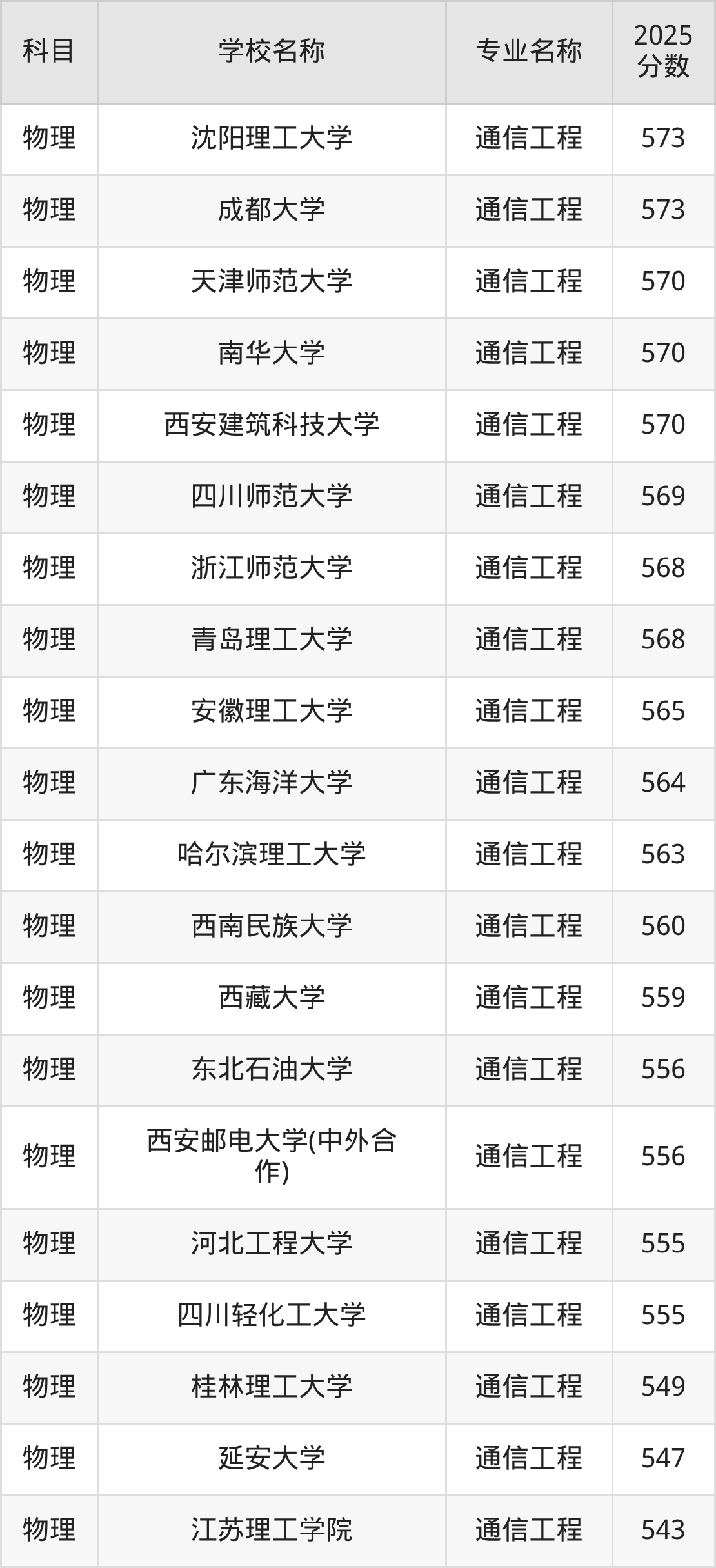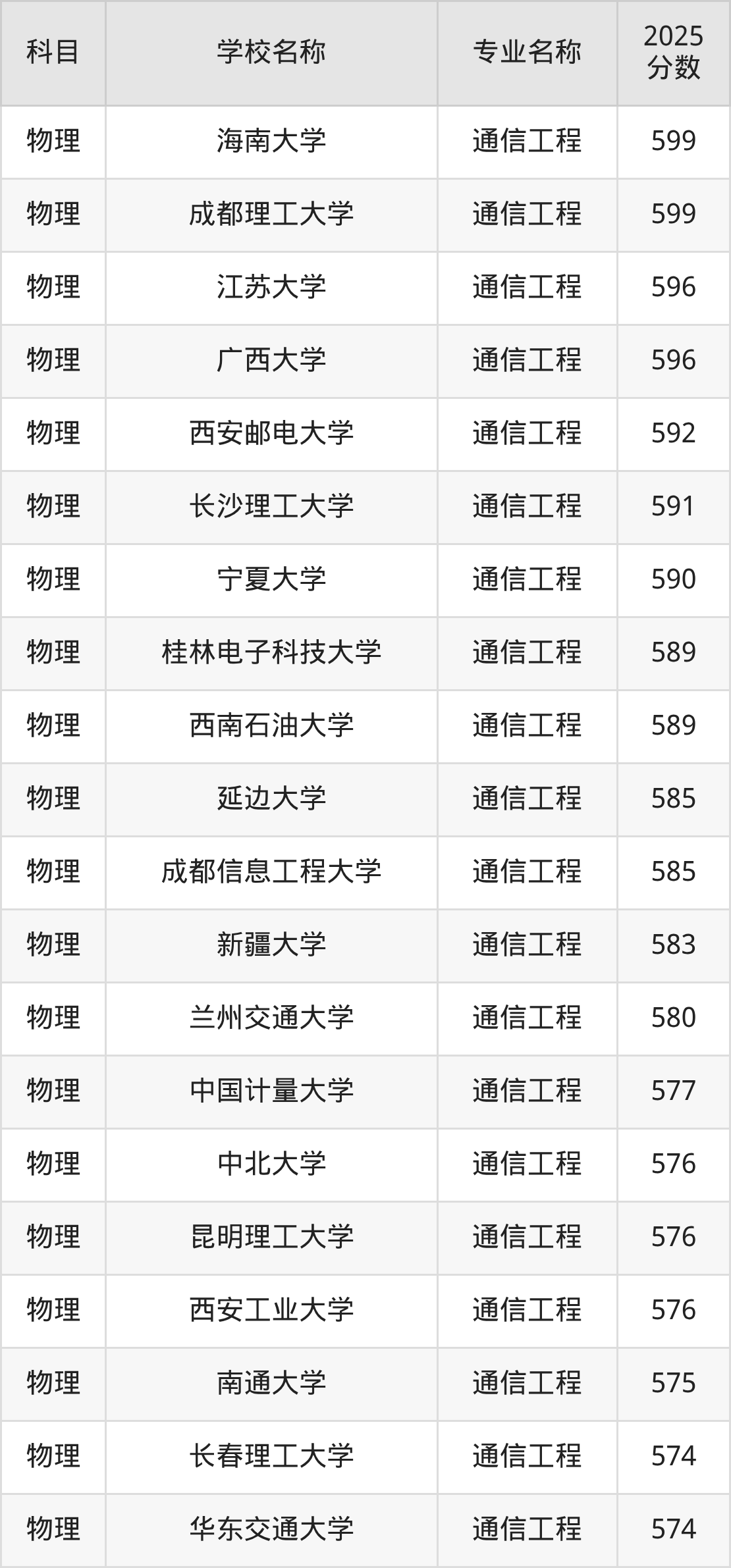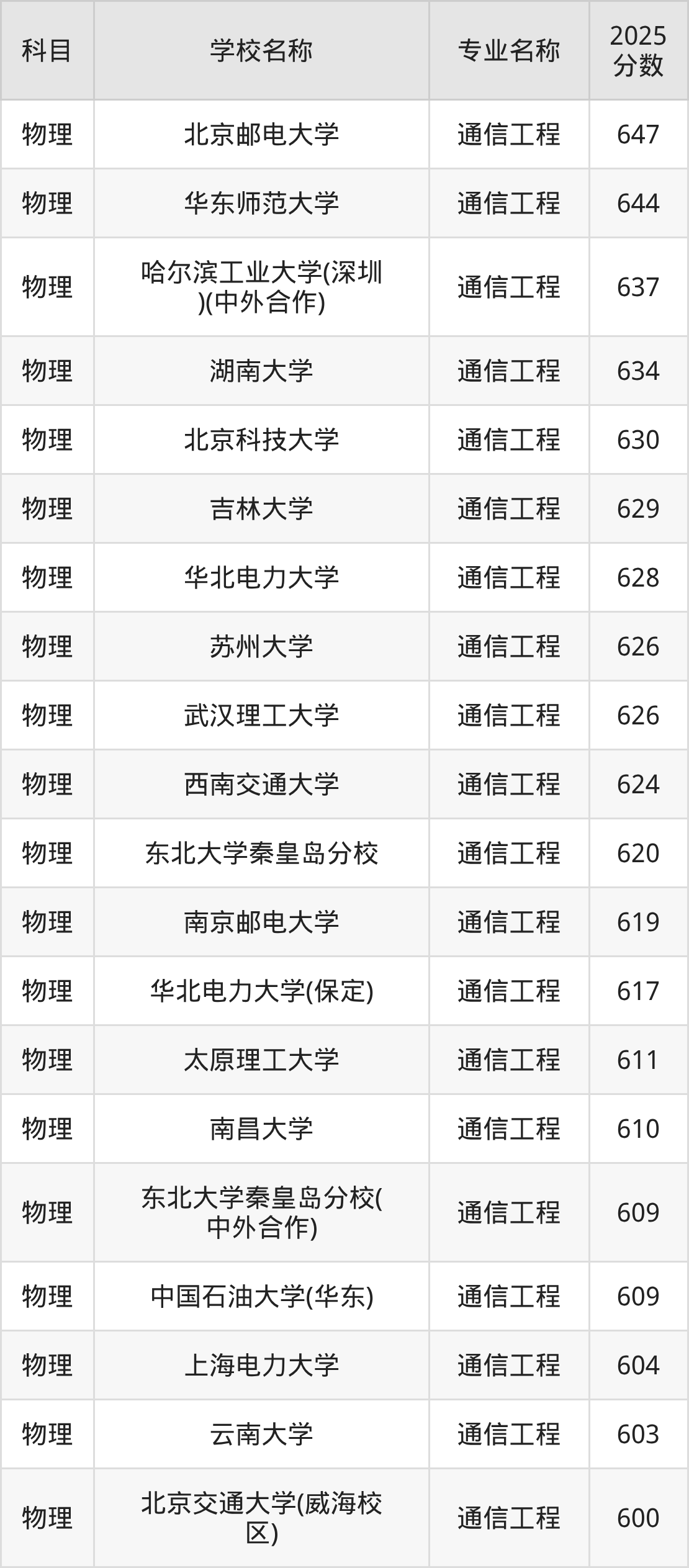 下文将为大家展示重庆市大学通信工程专业2025年在重庆高考的最低录取分数线!