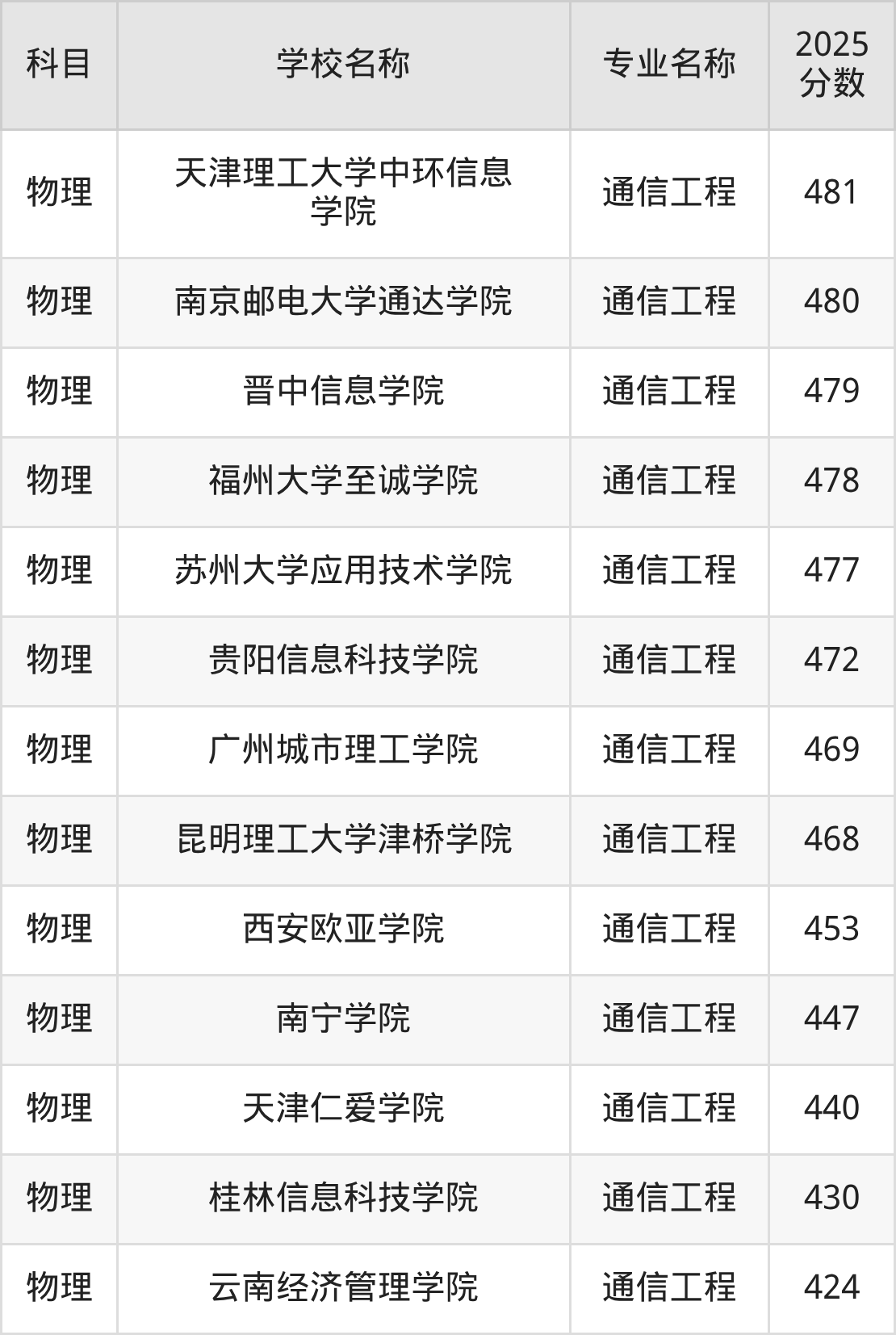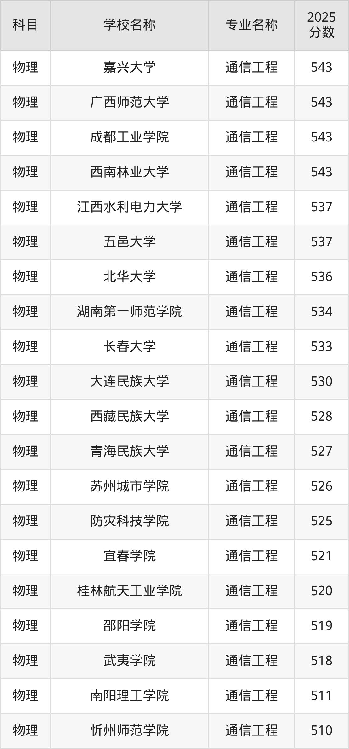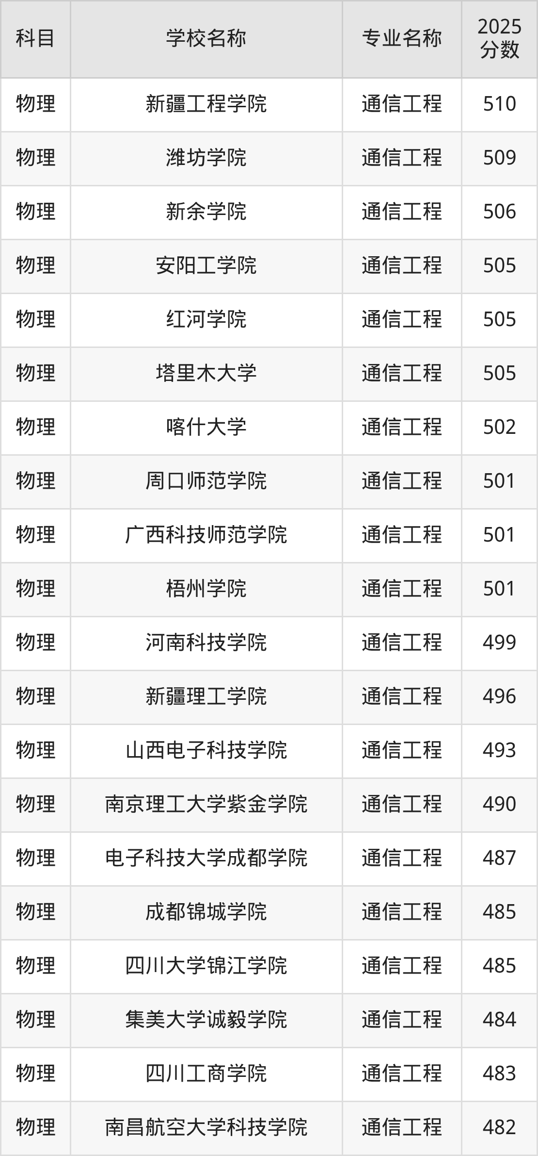 | 学校名称 | 专业名称 | 2025 分数 |