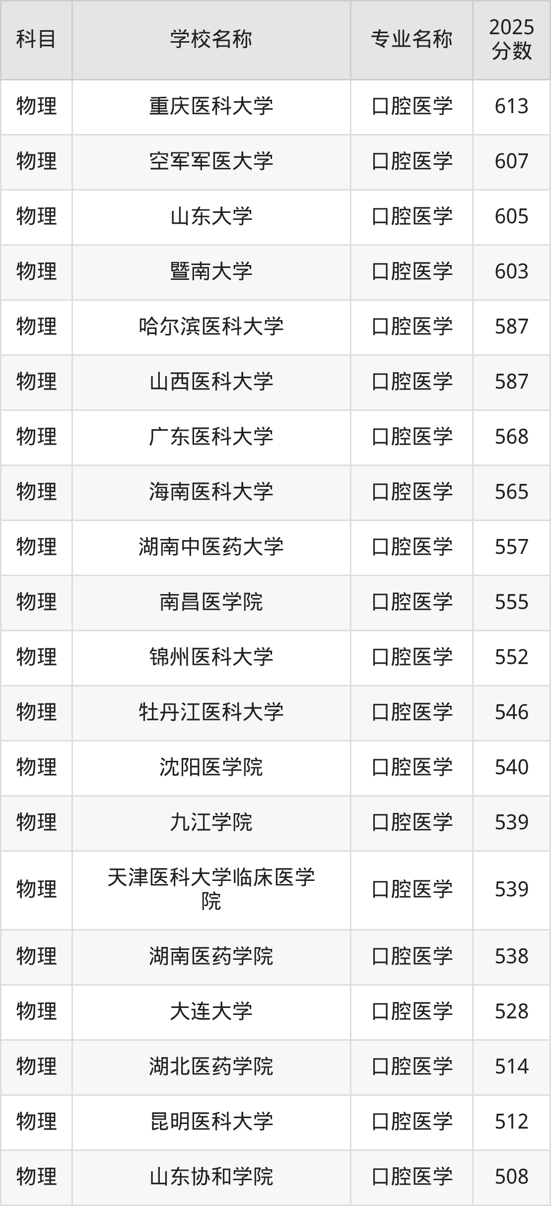 圆梦小编根据吉林2025年高考物理组专业分,将开设了口腔医学专业且位于吉林省内的大学按照“录取分”从高到低排序,得出了以上榜单。