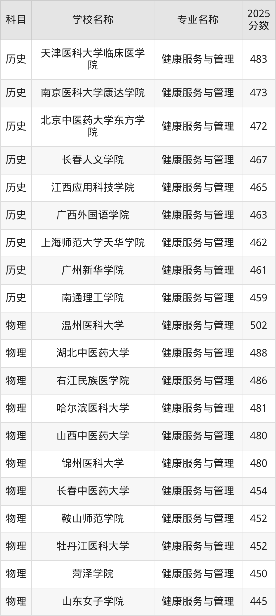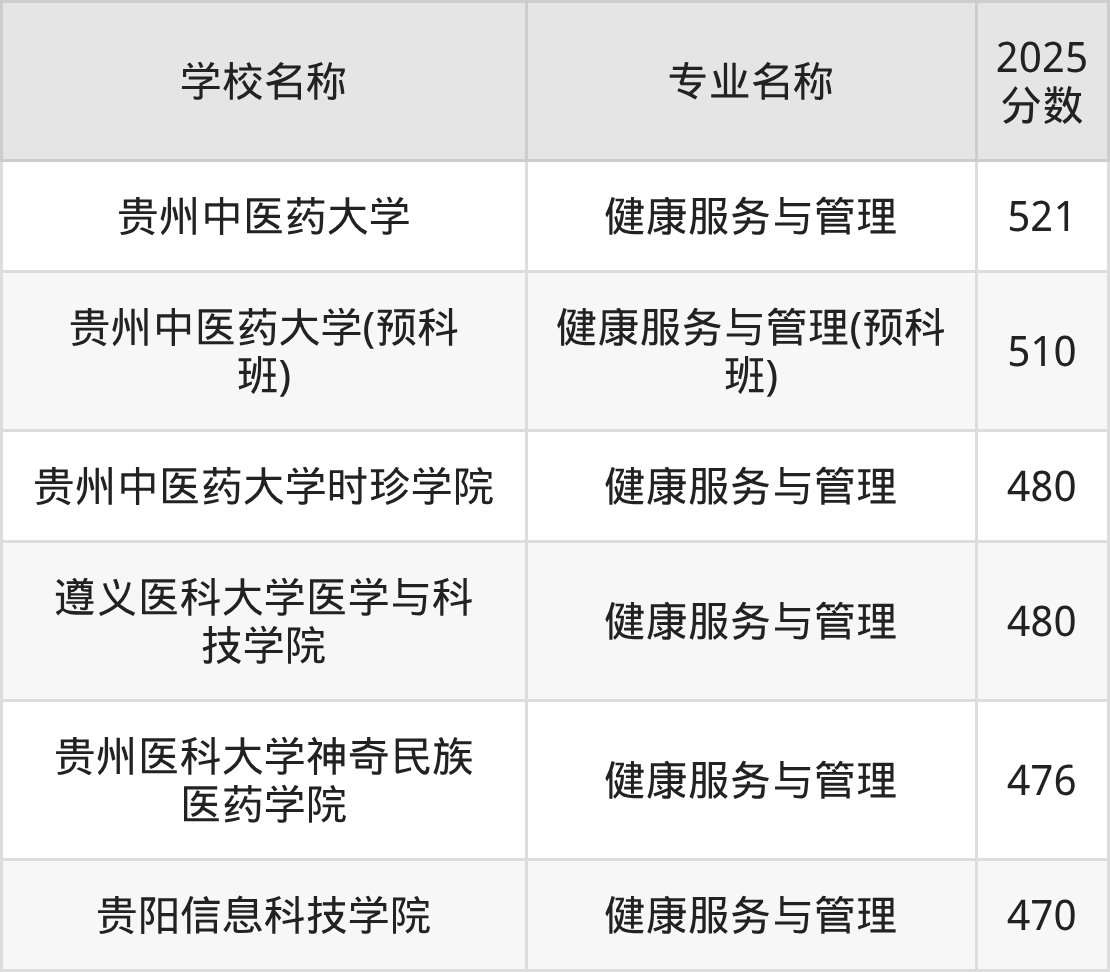 下文将为大家展示贵州省大学健康服务与管理专业2025年在贵州高考的最低录取分数线!