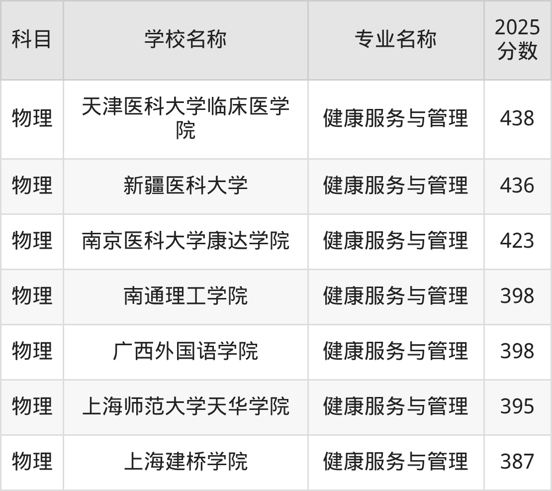 贵州高考物理组:健康服务与管理专业的最低分是416分~468分